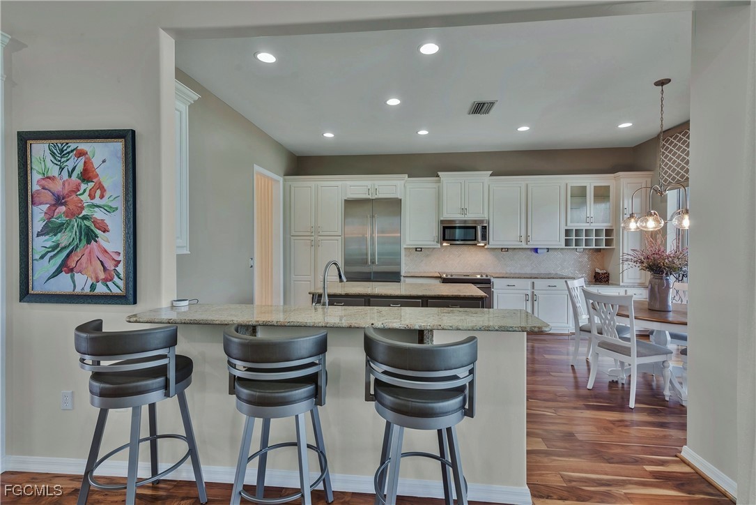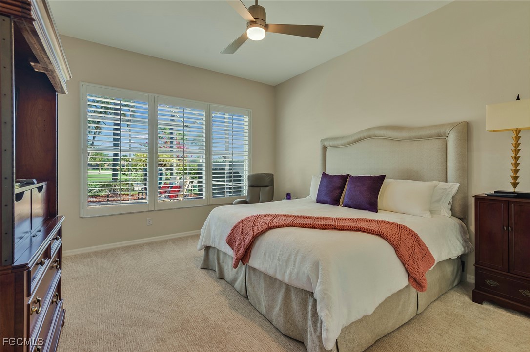 THIS 3BR+DEN CAYMAN MODEL IS LOADED WITH UPGRADES & NEWER ITEMS AND ENJOYS AN EXCEPTIONAL GOLF COURSE VIEW OVER THE 15TH & 14TH HOLES! Most everything in this home has been recently remodeled/replaced which includes new roof 3 years ago. Newer hardwood floors in main living areas with upgraded carpet in bedrooms and tile in baths. Kitchen remodeled in 2018 with high end white cabinets, Bosch appliances and granite counters. Both baths and laundry room have also been recently updated with remodels. The laundry also features front load LG Washer & Dryer. Enjoy TERRIFIC GOLF VIEWS from your outdoor living area with pavered pool deck & pool/spa combo with newer equipment. The Den not only has the hardwood flooring but also built-in cabinetry. The master closet also has terrific built-ins. Plantation shutters on windows. Electric roll down hurricane screen for lanai with accordion storm shutters for windows. THIS HOME COMES WITH A BUNDLED GOLF MEMBERSHIP! MAJOR GOLF COURSE RENOVATION JUST COMPLETED TO THE HIGHEST STANDARDS. ALMOST ALL OTHER AMENITIES JUST REDONE OR RECENTLY REFRESHED. Colonial CC is a highly desirable resort community that offers 18 holes of Championship golf, clubhouse with dining, fitness center, resort style pool, tennis, pickleball, bocce, miles of walking trails and MORE! Moderate HOA fees, high quality amenities and convenient location make this community a great choice. YOUR NEW FLORIDA HOME HAS ALL THE BEST STUFF AND WILL IMMEDIATELY IMPRESS!