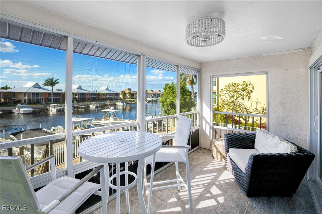 4116 SE 20th Place, Unit 202 captures the rhythm of waterfront living in one of Cape Coral’s most desirable boating locations. This second-floor 2 bedroom, 2 bathroom condo includes a deeded dock with a 10,000 lb boat lift, accommodating boats up to 34 feet. Dock motors were replaced within the last year, and the canal offers direct Gulf access with no bridges, putting the Caloosahatchee River just minutes from your slip.