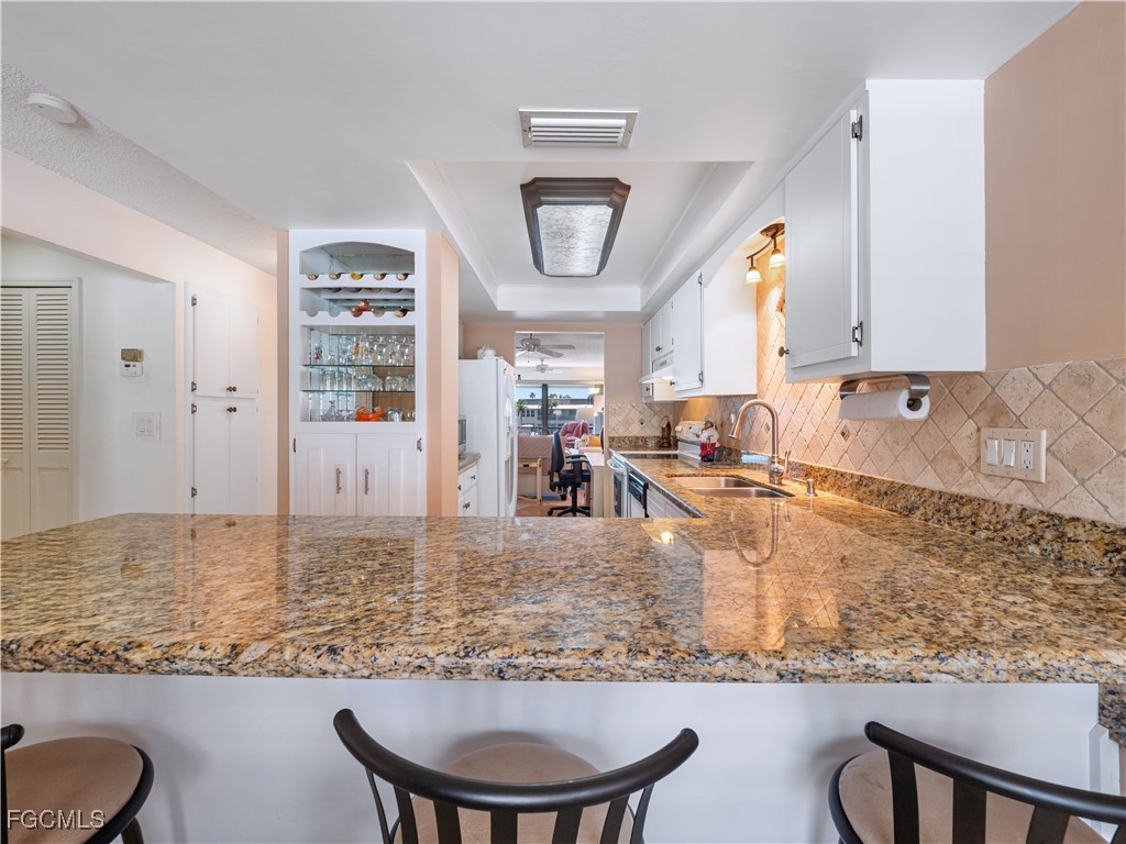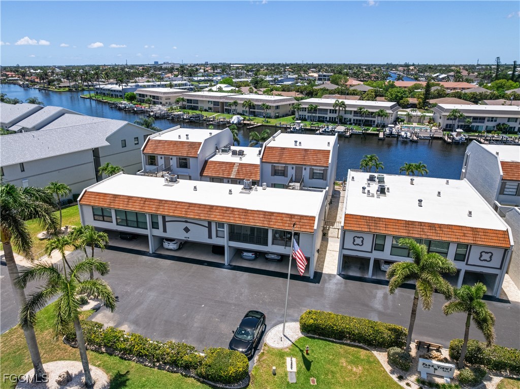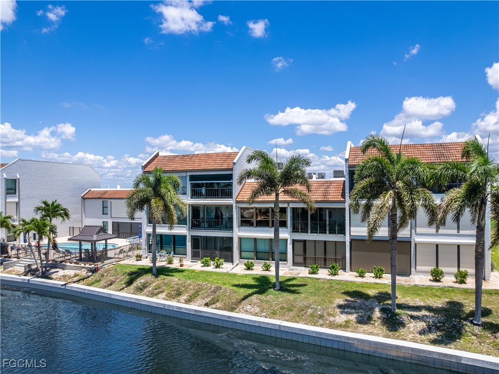 Wake up to sweeping sunrise views over the Caloosahatchee River and end your day with peaceful canal-front sunsets — a rare combination that delivers the true Southwest Florida waterfront lifestyle. This top-floor condo offers the best of both settings, with a 200-foot canal to the west ideal for boating, including first-come, board-approved dockage, and the beautiful Jaycee Park to the east, where you can walk the riverfront, watch boats cruise by, and enjoy the coastal scenery. The community features a brand-new seawall currently under construction, adding long-term value and peace of mind. Inside, nearly 1,300 square feet of bright, open living space is designed for comfort and everyday convenience. The updated kitchen includes granite counters, newer appliances, and a chest freezer — perfect for stocking up before a day on the water. The spacious primary suite feels like a private retreat, with sliders to the screened lanai, a custom walk-in closet, dual sinks with a dressing area, and a separate water closet with walk-in shower. The split floor plan places the guest bedroom and second bath on the opposite side of the unit, offering privacy and comfort for visiting family and friends. Additional features include a built-in bar cabinet, large hallway pantry, in-unit laundry, full hurricane protection, and a covered garage parking space with a private storage closet. The A/C system was upgraded in 2018 for efficient, year-round comfort. One of the most exciting benefits of this location is the brand-new Jaycee Park project taking shape directly across the street, currently under construction and expected to be completed in Fall 2025 — bringing enhanced beauty, amenities, and long-term appeal to the neighborhood. This residence truly captures the essence of waterfront living, balancing natural beauty, convenience, and an unbeatable Cape Coral lifestyle.