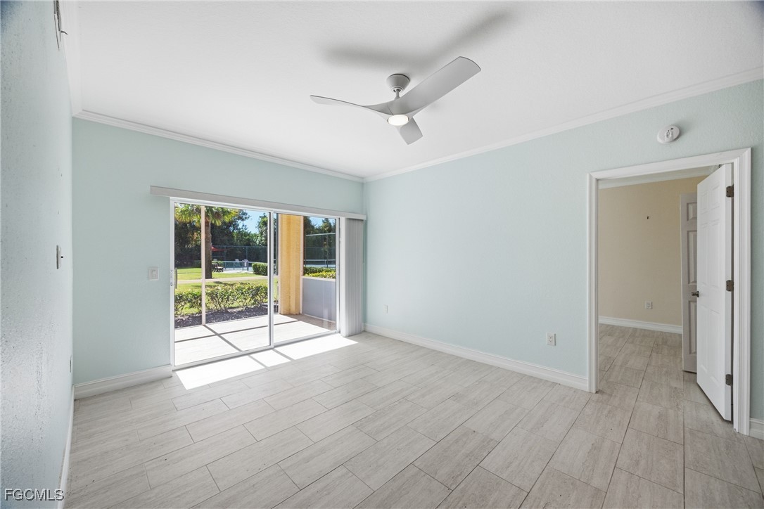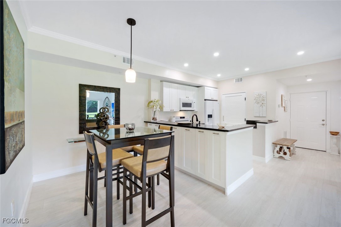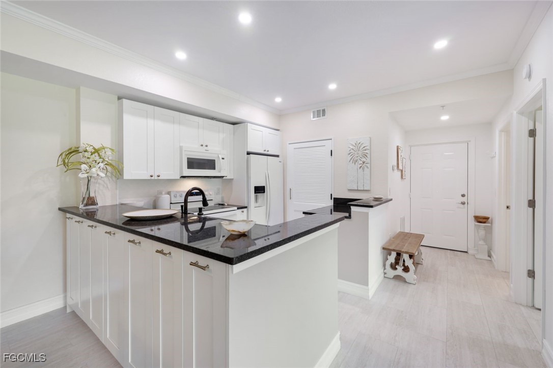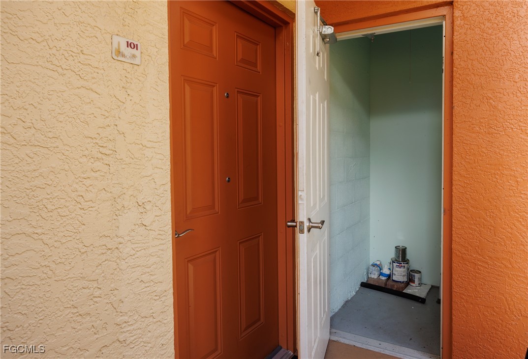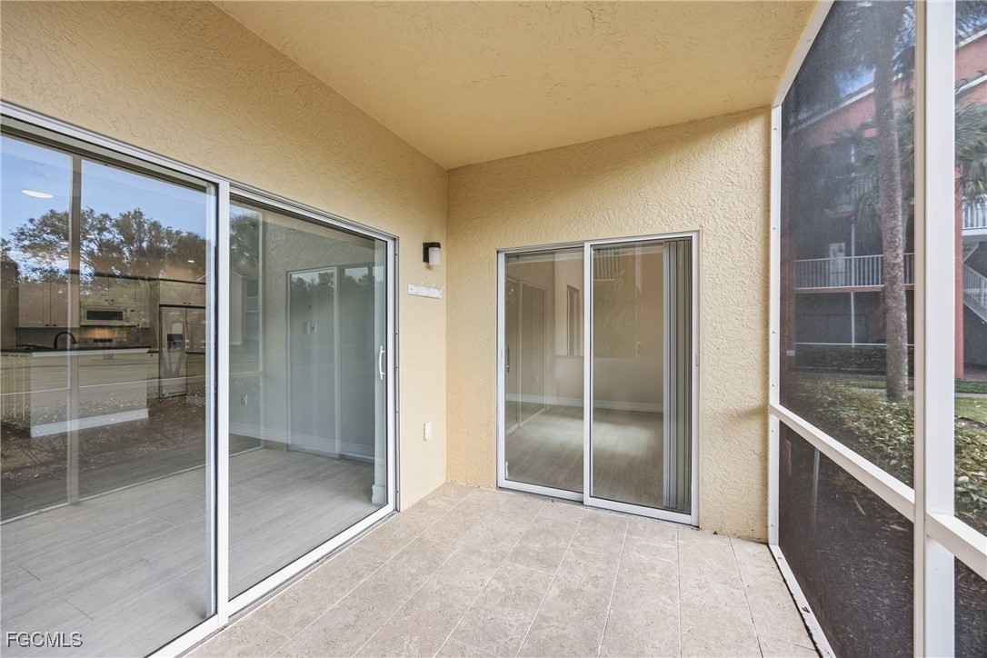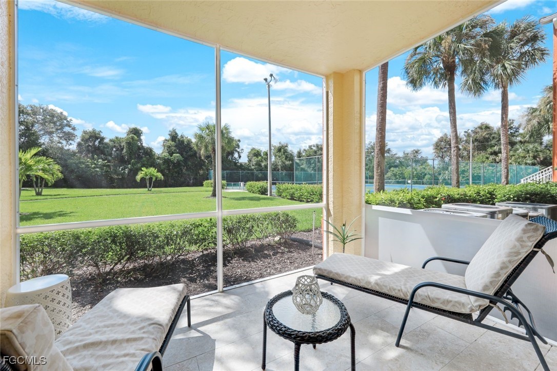 Welcome to Tuscany Gardens! This GORGEOUS 2 bedroom, 2 bath 1st floor condo with a detached garage (#44) has been meticulously remodeled and is perfect for those looking for a blend of convenience, luxury and comfort. These owners have thought of everything leaving you with nothing to do but move in. The open kitchen is bright and light with new white shaker cabinetry, white tile backsplash, granite countertops and new Whirlpool appliances. Additional cabinets have been added underneath the bar overlooking the dining area. The laundry room features a soft close door and is just off the kitchen with new washer and dryer. This home features new tile flooring throughout, new baseboards and crown molding, new HVAC, new tankless water heater, new recessed LED lighting, new light fixtures and fans, new plumbing fixtures and fresh paint. There is a new front door and all windows were replaced with doubled paned glass. Both bathrooms have been updated with new vanities with quartz countertops, new fixtures and walk-in showers with custom glass doors. You will love the HUGE walk-in shower and walk-in closet in the primary suite. Two large sliding glass doors take you to your own oversized, screened and tiled lanai. Here you look over a private green area with trees in the horizon and the serene landscape and southern rear exposure provides a picturesque backdrop that soothes the soul. You also have a storage closet just outside your front door. Tuscany Gardens is highly desirable, pet friendly, gated community located in South Fort Myers just off the Daniels Pkwy corridor. You will enjoy all of the amenities such as heated community pool, spa, remodeled clubhouse, fitness center, tennis courts/pickle ball courts and car wash station. You will have peace of mind with knowing this association is in good standing, has reserves, continues to update the community while keeping the HOA fees some of the most affordable in Fort Myers. Your fees include water/sewer, exterior insurance and pest control, lawn and landscape maintenance, security and use of the amenities. Ideal location near Bell Tower, shopping, dining, beaches, performing arts, Red Sox and Twins Spring Baseball fields, historic downtown, RSW Int'l Airport and lots more!