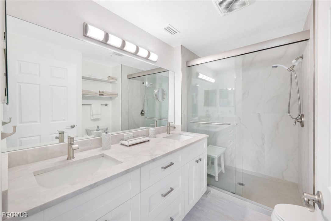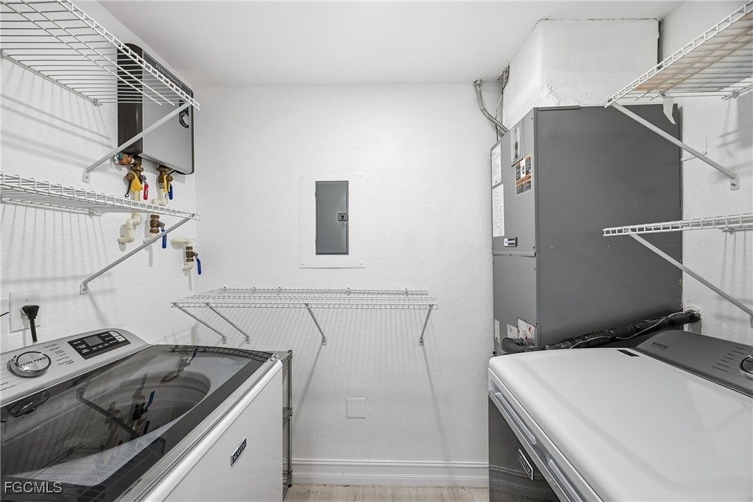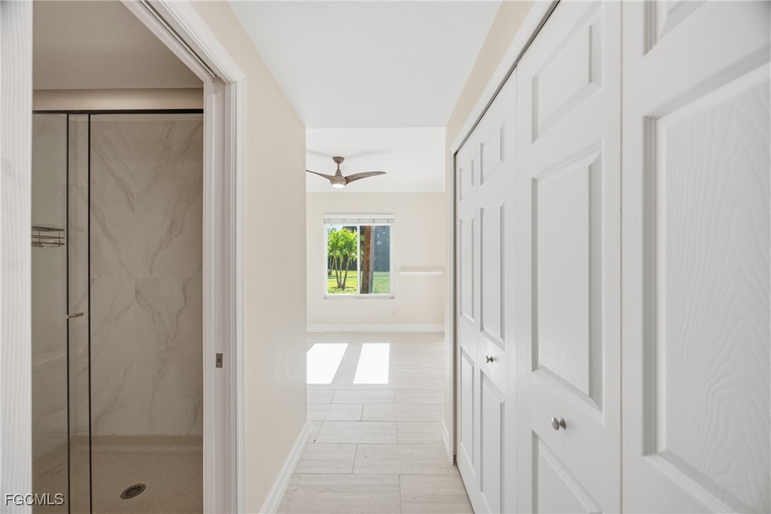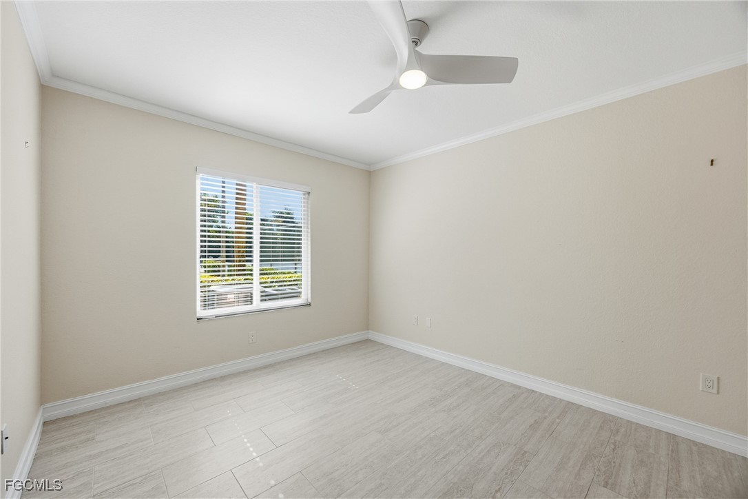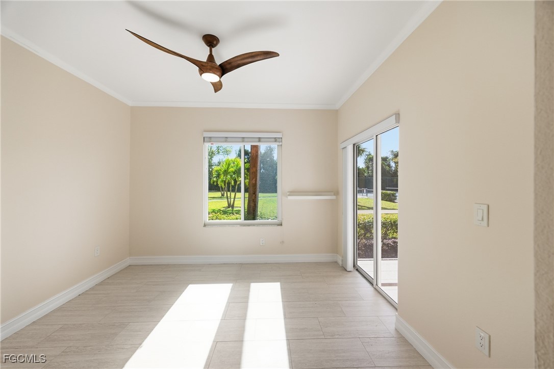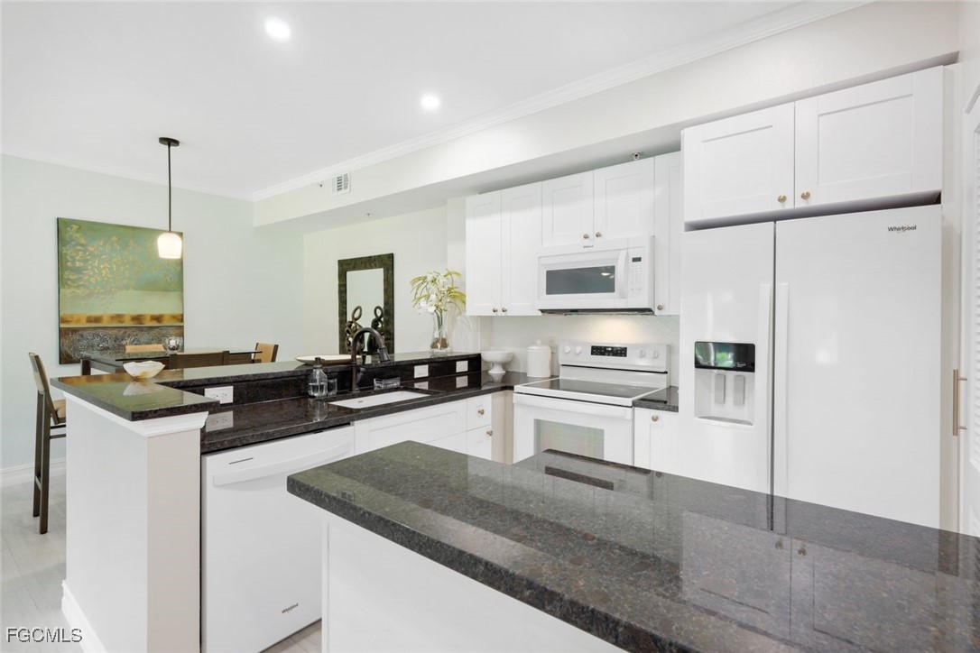 Welcome to Tuscany Gardens! This GORGEOUS 2 bedroom, 2 bath 1st floor condo with a detached garage (#44) has been meticulously remodeled and is perfect for those looking for a blend of convenience, luxury and comfort. These owners have thought of everything leaving you with nothing to do but move in. The open kitchen is bright and light with new white shaker cabinetry, white tile backsplash, granite countertops and new Whirlpool appliances. Additional cabinets have been added underneath the bar overlooking the dining area. The laundry room features a soft close door and is just off the kitchen with new washer and dryer. This home features new tile flooring throughout, new baseboards and crown molding, new HVAC, new tankless water heater, new recessed LED lighting, new light fixtures and fans, new plumbing fixtures and fresh paint. There is a new front door and all windows were replaced with doubled paned glass. Both bathrooms have been updated with new vanities with quartz countertops, new fixtures and walk-in showers with custom glass doors. You will love the HUGE walk-in shower and walk-in closet in the primary suite. Two large sliding glass doors take you to your own oversized, screened and tiled lanai. Here you look over a private green area with trees in the horizon and the serene landscape and southern rear exposure provides a picturesque backdrop that soothes the soul. You also have a storage closet just outside your front door. Tuscany Gardens is highly desirable, pet friendly, gated community located in South Fort Myers just off the Daniels Pkwy corridor. You will enjoy all of the amenities such as heated community pool, spa, remodeled clubhouse, fitness center, tennis courts/pickle ball courts and car wash station. You will have peace of mind with knowing this association is in good standing, has reserves, continues to update the community while keeping the HOA fees some of the most affordable in Fort Myers. Your fees include water/sewer, exterior insurance and pest control, lawn and landscape maintenance, security and use of the amenities. Ideal location near Bell Tower, shopping, dining, beaches, performing arts, Red Sox and Twins Spring Baseball fields, historic downtown, RSW Int'l Airport and lots more!