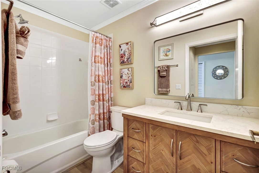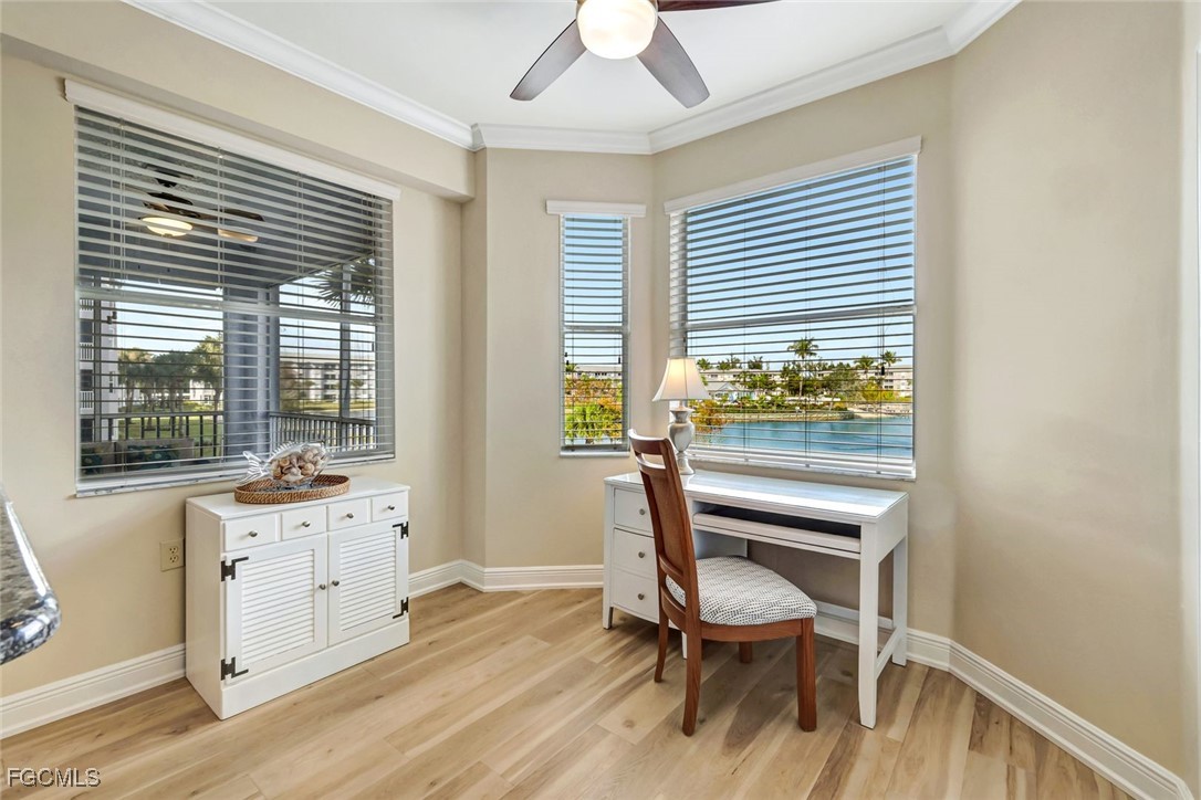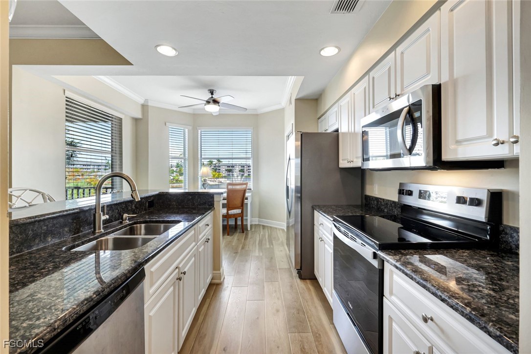 Exceptional WATERFRONT CONDO at Heritage Pointe, a tropically landscaped, gated community located in South Fort Myers near Fort Myers Beach and Sanibel/Captiva Islands. Offered FURNISHED - TURNKEY, this SECOND FLOOR, two-bedroom, two bath unit features SENSATIONAL VIEWS of an EXPANSIVE LAKE with SOOTHING, LIGHTED FOUNTAINS from the tiled lanai as well as several interior rooms. Immaculately kept and well maintained, the unit offers an OPEN FLOOR PLAN consisting of a flowing living area, dining room, pass-through kitchen, and breakfast nook - all with beautiful luxury vinyl plank flooring. The kitchen features granite countertops and newer, stainless-steel appliances. Both bathrooms are updated with unique vanities, flooring, and fixtures. Other features include crown molding throughout, taller baseboards, five ceiling fans, updated fixtures, neutral paint colors, extra shelving, and more. Also included is a very convenient, deeded storage unit & covered parking space, both just steps from your front door. High-definition fiber-optic based TV & Internet, and water/sewer are included in the comparably low maintenance fee. Heritage Pointe is a financially sound, pet-friendly community located close to the beaches, near Wakahatchee Park & Recreation center with tennis & pickleball courts, Health Park Hospital & Medical complex, pharmacies & grocery stores, shopping, restaurants, and a variety of entertainment venues. Community amenities include a recently renovated amenities center, resort-style heated pool & spa, fitness room, extensive library, paved walking path, plus a community gathering area featuring gas grills, and all-purpose area for bocce ball, cornhole, and putting practice. The community offers an extensive social calendar of activities & events. This beautiful property will make a wonderful SEASONAL retreat, FULL-TIME home, or RENTAL INVESTMENT OPPORTUNITY.