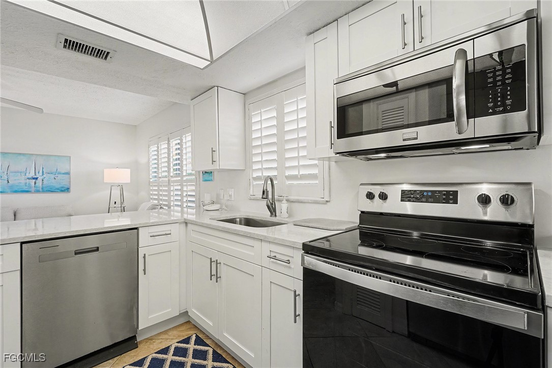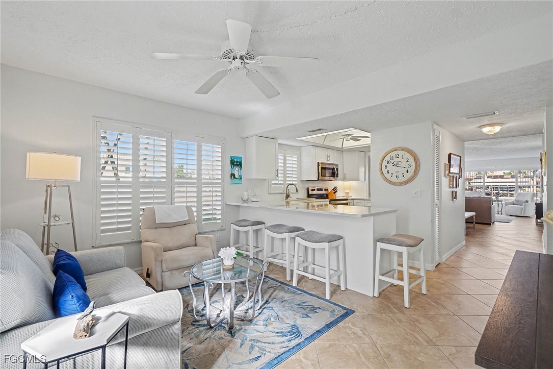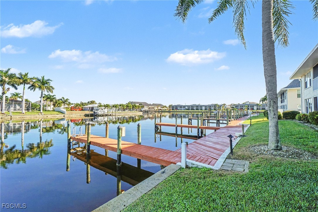 The owner of 35 years is ready to say goodbye to this stunningly remodeled and turnkey furnished condo. This first-floor end unit is very spacious. As you walk in, you'll see a large room with space for an office/den or morning room. The kitchen has all new appliances, solid wood cabinetry and quartz counter tops. It also has a generously sized living and dining area, plus breakfast bar. The large master suite has a private bath and walk-in closet. There is also a guest bedroom and second bath, plus a roomy laundry room with more cabinets for additional storage and a long countertop for folding clothes. Your assigned covered parking space is just 5 feet from your front door and you’ll have an outside storge closet as well. Out back you’ll enjoy amazing views over the 200’ wide Partridge Canal from your living room and lanai. You will love having your own boat slip which is under contract to be rebuilt, and it provides amazing gulf access. It is just ½ mile away from the river with no bridge restrictions. This unit is also just ½ mile walk to the new Jaycee Park. Scheduled to open in April, the new Jaycee park will be a beautiful waterfront oasis and will have a boardwalk and boat slips along the Caloosahatchee River. It will also include two new playgrounds, a picnic area, bandshell and a 5,000sf splash pad, plus beach volleyball, cornhole and ping pong tables. The association has all new roofs soffits and gutters installed in 2024. You’ll also enjoy the heated association pool which provides beautiful water views as well. Your piece of paradise can be had at a much lower price than you ever imagined. Make an appointment today to see this stunningly remodeled end unit which is being offered turnkey furnished with all new furnishings and see what your money can buy.