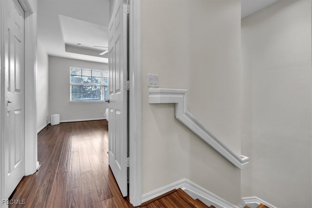 Located within the gated San Simeon community in Fort Myers, this two-story townhouse is part of a well-maintained building of seven residences and features an attached two-car garage. Offering 1,650 square feet of thoughtfully designed living space, the home includes three bedrooms and two-and-a-half bathrooms in a functional layout ideal for full-time or seasonal living. A charming covered front entry, framed by elegant Mediterranean-style architecture, welcomes you inside, while a paver driveway and walkway lead to the recessed front door and garage, providing strong curb appeal and everyday convenience. Neutral exterior tones, a classic tile roof, and manicured landscaping create a clean, upscale impression from the moment you arrive. Upon entering, the foyer opens seamlessly into the living and dining areas, all finished with tile flooring throughout the first floor for easy maintenance and a cohesive look. Sliding glass doors extend the living space to the screened lanai, which features paver flooring, offering a comfortable indoor-outdoor lifestyle. The spacious eat-in kitchen is well appointed with stainless-steel appliances, abundant cabinet and drawer storage, a pantry closet, and recessed lighting for both style and functionality. A convenient half bathroom just off the foyer, along with additional closet space, adds to the home’s thoughtful storage design. A wood staircase leads to the second floor, where the primary suite is highlighted by elegant tray ceilings, an expansive walk-in closet, and a spa-like bathroom with a soaking tub, walk-in shower, dual single-sink vanities, and a private toilet room. Two generously sized guest bedrooms, each with built-in closets, share a full bathroom. Wood-look tile flooring extends throughout the second floor, combining style and durability, and a conveniently located laundry room completes the upper level. Impact-resistant windows provide added peace of mind throughout the home. A new roof, installed in 2024, enhances both protection and value, while residents enjoy resort-style amenities including a fully equipped fitness center, sparkling swimming pool and spa, children’s play area, and clubhouse. This thoughtfully maintained residence blends comfort, style, and convenience in one exceptional package. Centrally located, the home offers easy access to major shopping centers, restaurants, Southwest Florida International Airport, parks, and I-75, combining convenience with a vibrant Fort Myers lifestyle. **PLEASE ENJOY THE 3D INTERACTIVE VIRTUAL TOUR ASSOCIATED WITH THIS LISTING**