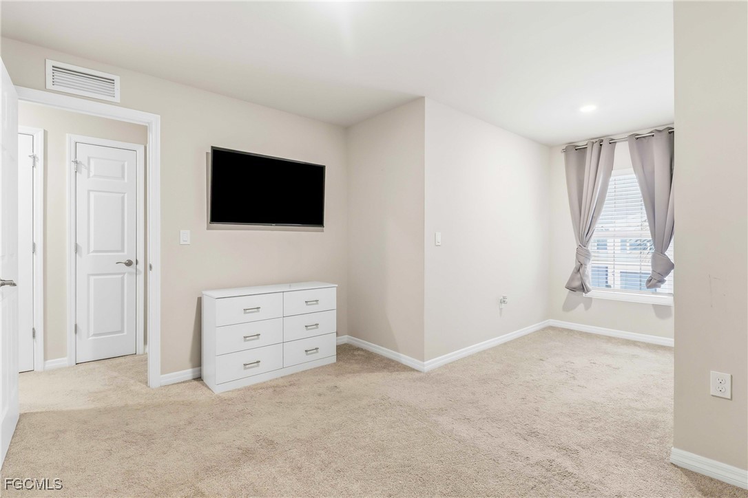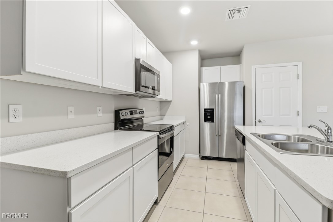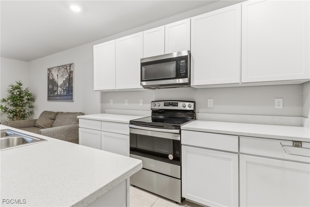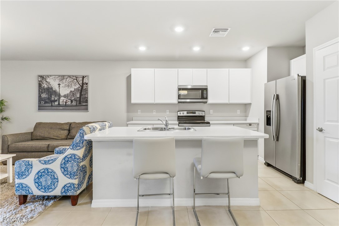 The kitchen is thoughtfully designed with quartz countertops and stainless-steel appliances. Sliding glass doors from the living room lead to a screened-in, covered lanai ideal for relaxing and enjoying the Florida lifestyle.