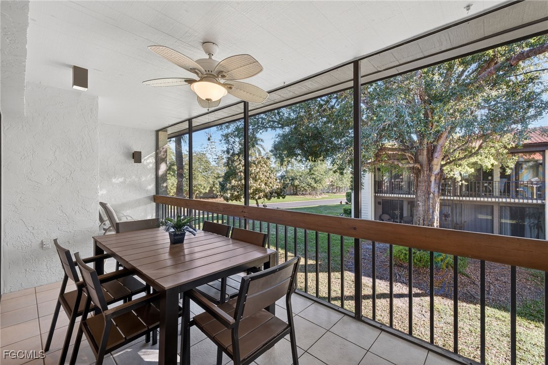 Located in Windjammer Village at The Landings Yacht, Golf & Tennis Club, this spacious 3-bedroom, 2-bath split-floorplan condo offers over 1,500 sq ft of light-filled living space. The home has been recently painted and features LUXURY VINYL WOOD PLANK FLOORING throughout, a renovated kitchen with a center island, a ceramic tile backsplash, and a newer HVAC system. The primary suite is privately situated and includes a large walk-in closet and dual bathroom vanities. A fan favorite floor plan, spacious with the guest and primary rooms on separate sides of the home. A huge screened lanai spans the entire back of the condo and features new screening, perfect for enjoying outdoor living. The unit is pet-friendly, move-in ready, and offered turnkey, making it ideal for full-time living or rental. Covered parking plus guest parking included. The Landings is a 24/7 Guard-patrolled gated, bundled community. Embrace an active community lifestyle with amenities including golf, Har-Tru tennis courts, pickleball & bocce ball courts, and a fitness center. For water enthusiasts, the marina beckons for boating adventures and includes a boat slip (based on availability) at the full-service marina. Residents also enjoy two on-site restaurants, lush park-like grounds, daily activities, and an active social calendar. Experience the vibrant blend of culture and leisure as you're just moments away from theaters, the River District, beaches, shopping, the airport, and exciting spring training events. This condo offers more than just a home; it offers a gateway to an enriched and fulfilling life. A rare opportunity to enjoy a true resort-style lifestyle in one of the most prestigious communities in the McGregor corridor of Fort Myers.