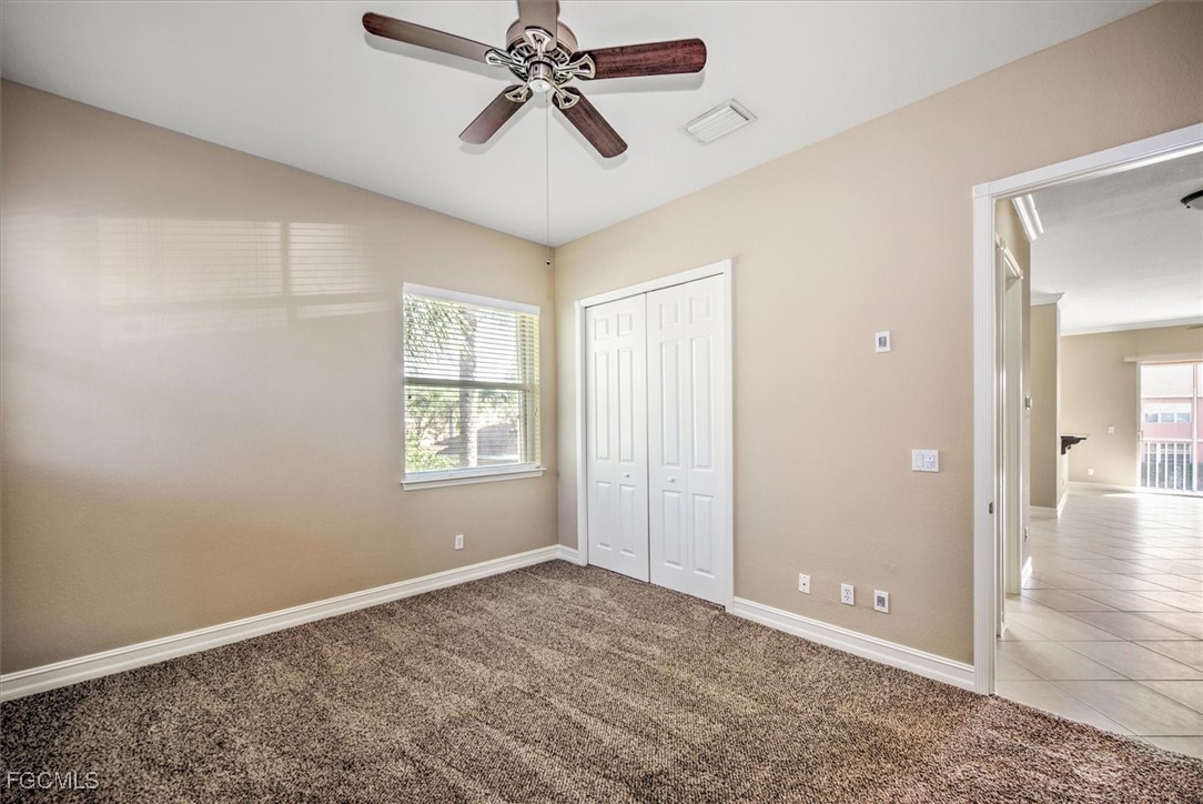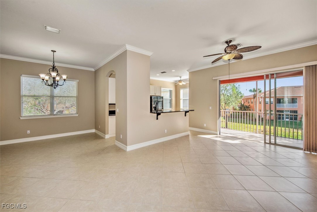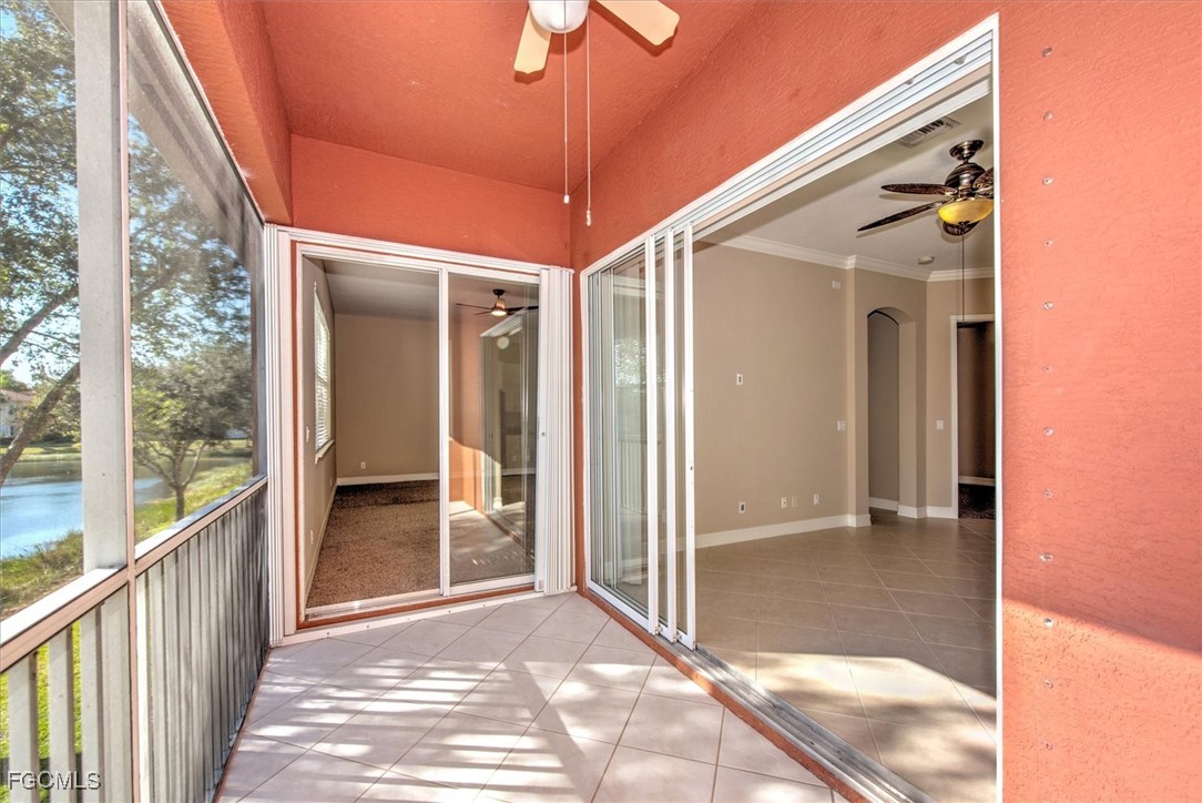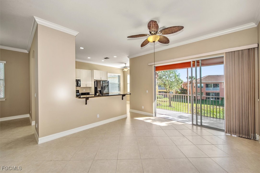 Check out this beautiful Coach Home, featuring two spacious bedrooms, a large den or office, a two-car attached garage, and a cozy screened lanai with stunning lake and landscape views. The open layout offers a roomy kitchen with plenty of counter space and storage, a breakfast nook, breakfast bar, and formal dining area. Highlights include a split bedroom floor plan, high ceilings, crown molding, and a step-in shower in the guest bath. The oversized primary bedroom boasts an en suite with dual vanities, a soaking tub, and a separate shower. Updates include fresh interior paint plus a new refrigerator, stove, washer, and dryer in 2024; accordion shutters on all windows, storm panels for the lanai sliders, and impact-resistant glass on arched windows in 2023; and a new air conditioner, microwave, and dishwasher in 2022. Located in Portofino, you’ll be close to top-rated schools, parks, shopping, dining, bike paths, I-75, the airport, FGCU, and more. Don’t miss your chance to make this incredible home yours.