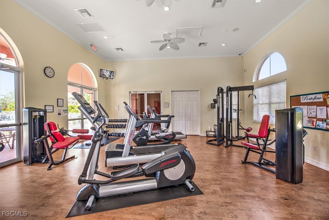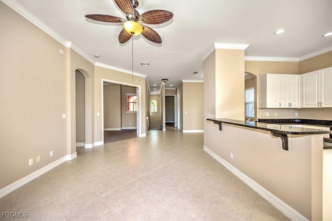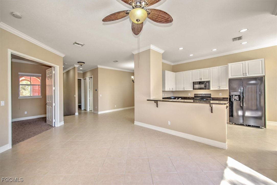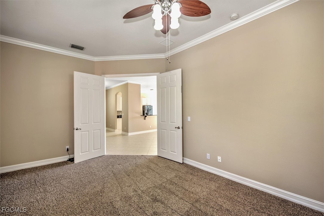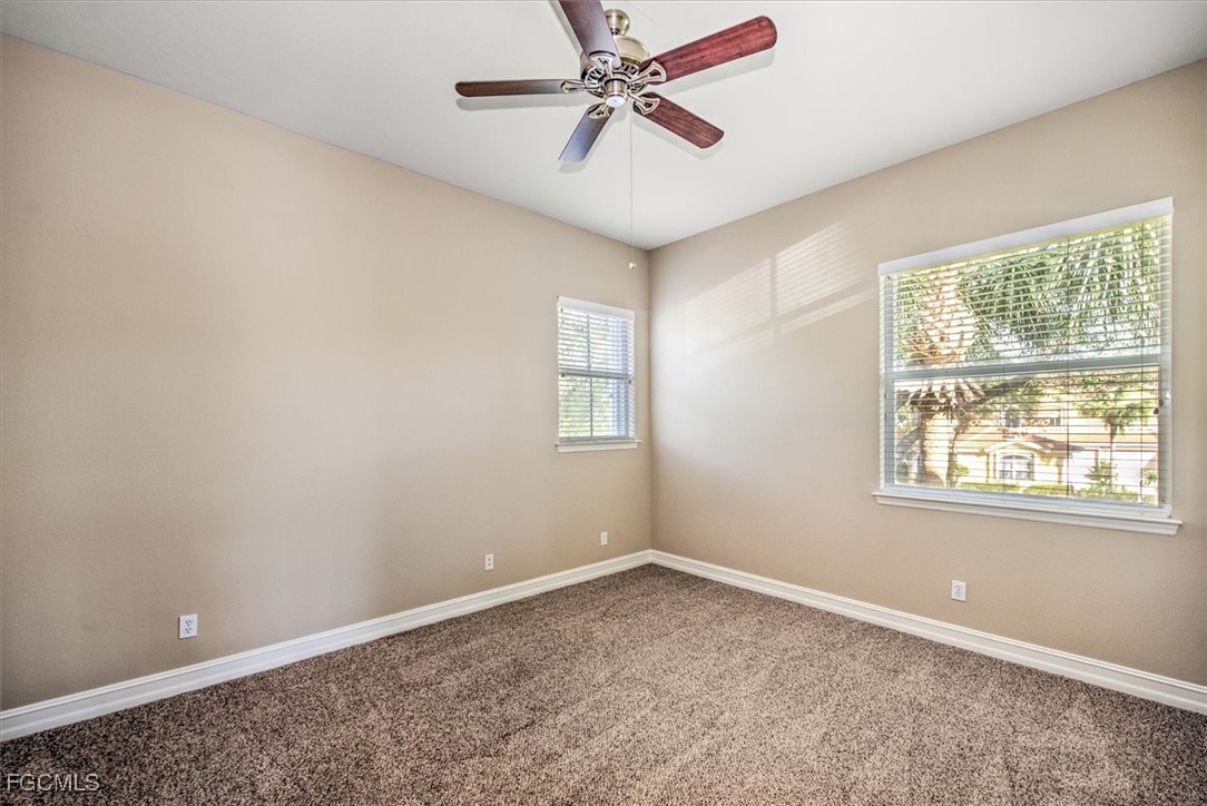 Check out this beautiful Coach Home, featuring two spacious bedrooms, a large den or office, a two-car attached garage, and a cozy screened lanai with stunning lake and landscape views. The open layout offers a roomy kitchen with plenty of counter space and storage, a breakfast nook, breakfast bar, and formal dining area. Highlights include a split bedroom floor plan, high ceilings, crown molding, and a step-in shower in the guest bath. The oversized primary bedroom boasts an en suite with dual vanities, a soaking tub, and a separate shower. Updates include fresh interior paint plus a new refrigerator, stove, washer, and dryer in 2024; accordion shutters on all windows, storm panels for the lanai sliders, and impact-resistant glass on arched windows in 2023; and a new air conditioner, microwave, and dishwasher in 2022. Located in Portofino, you’ll be close to top-rated schools, parks, shopping, dining, bike paths, I-75, the airport, FGCU, and more. Don’t miss your chance to make this incredible home yours.
