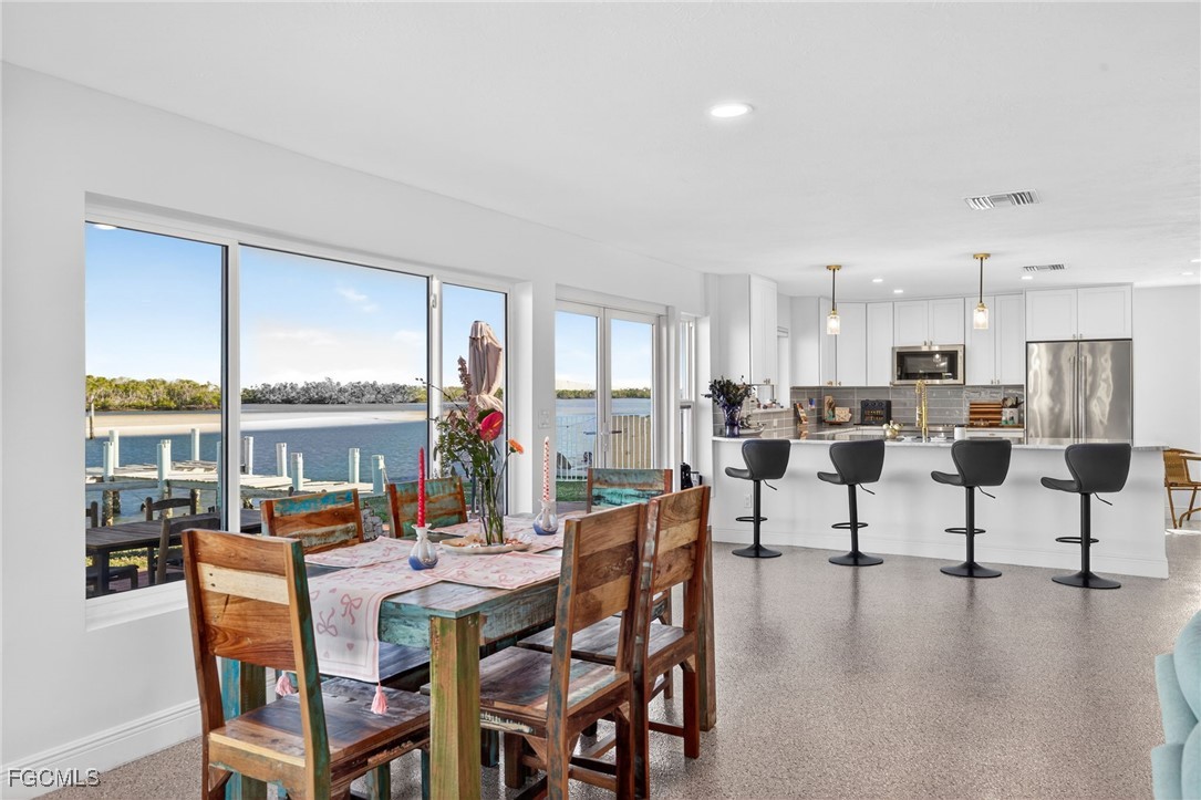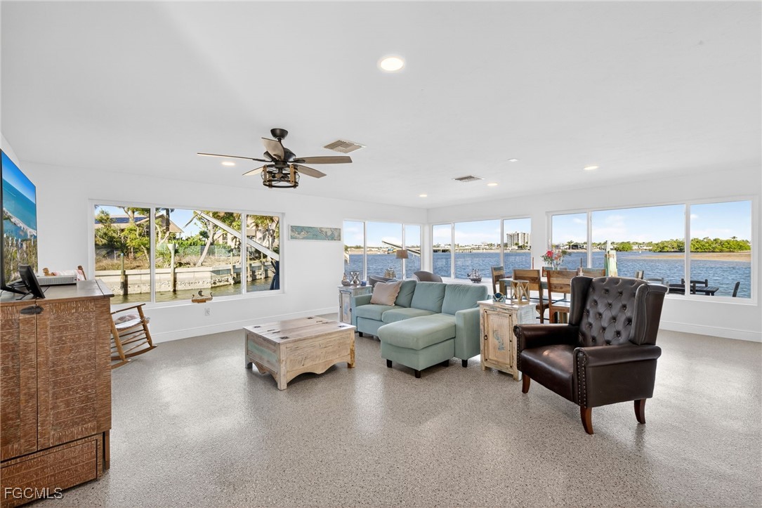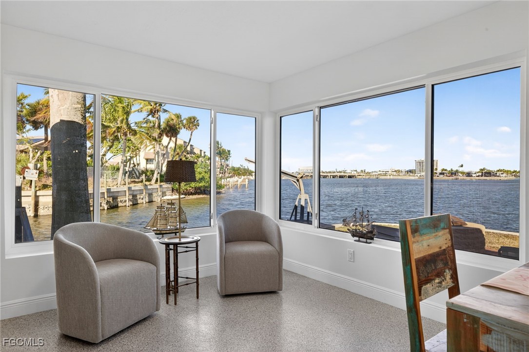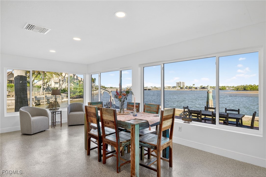 At 867 Oak Street, the luxury isn’t just in the finishes—it’s in the rare combination of an oversized lot and a layout designed to pull the beauty of the bay into every room. The interior has been thoughtfully updated to blend modern luxury with a relaxed, airy vibe. This layout gives you 2 bedrooms, 2 bathrooms, a den, & 2,326 sq. ft. of indoor living space. Walking through your front door and to the right, you'll notice the open-concept living area flows seamlessly into the dining and kitchen spaces. A standout feature of the home is the use of expansive, oversized windows along the rear of the property. These windows frame the views of the bay and allow natural light to flood the home. It also gives you endless opportunities to watch the sunrises from your sofa or chef inspired kitchen. Modern kitchen features include updated recessed lighting, stainless steel appliances, a breakfast bar/ oversized island and a beautiful tile backsplash. All bedrooms are spacious, designed to accommodate your family and friends. The den offers the perfect amount of room for an office or workout room. The bathrooms feature contemporary vanities, modern tile work in the showers, updated fixtures and even a soaking tub in the owner's suite! Around the corner from your bedrooms is a dedicated laundry area with a utility tub, a must-have for cleaning up after a day at the beach or on the water. Because the home sits on a double lot with both bayfront and canal frontage, you aren't just looking at a neighbor's dock—you have wide water views that make the interior feel much larger and more private than a standard canal-front home. You are also on the "right side" of the bridges with no height restrictions. For maximum peace of mind, the exterior is built with solid block/concrete construction and a metal roof while the interior has impact doors and windows. The property includes an attached 2-car garage and a large circular driveway, providing plenty of space for multiple vehicles and guest parking. You even have a versatile detached outbuilding, which gives you a "flex space". While the main house is designed for living and entertaining, this extra structure provides the perfect spot for specific lifestyle needs. For those who enjoy taking leisurely walks or bike rides, this home offers easy access to Estero Island/ Fort Myers Beach. Here, you will get a taste of the island life by enjoying a plethora of dining options, bars, shopping, and live music. PLUS! Only a half mile from this home, is the Key West Express ferry which means that in less than 3 hours, you could be in the Florida Keys! This is a dream home for the beach, boating, or fishing enthusiasts! Being in a desirable location and having no rental restrictions also makes for a wonderful vacation home or AirBnB! You get the quiet, residential peace of a dead-end street with the energetic "vibe" of the beach just over the Matanzas Pass Bridge. It's your chance to secure this one of a kind property!