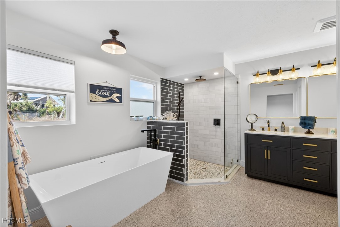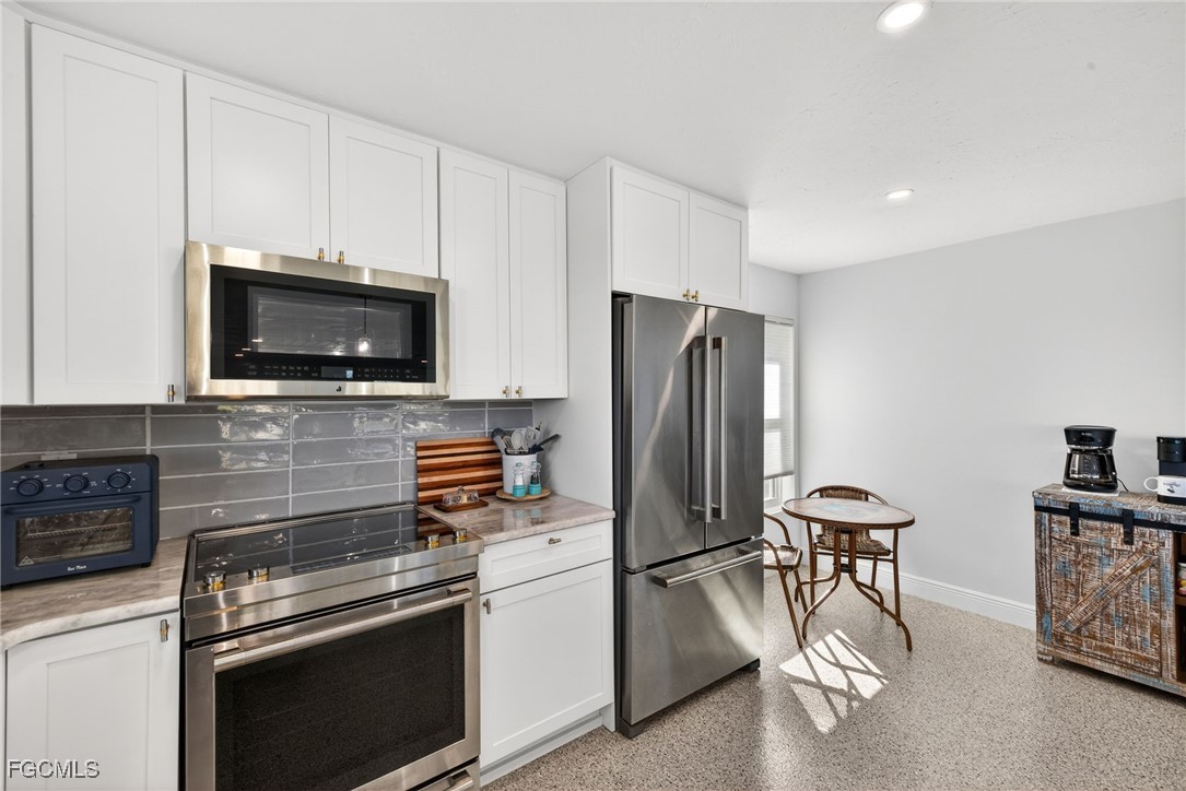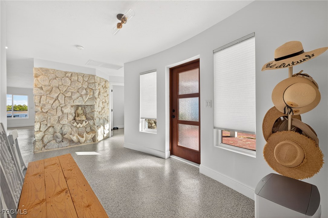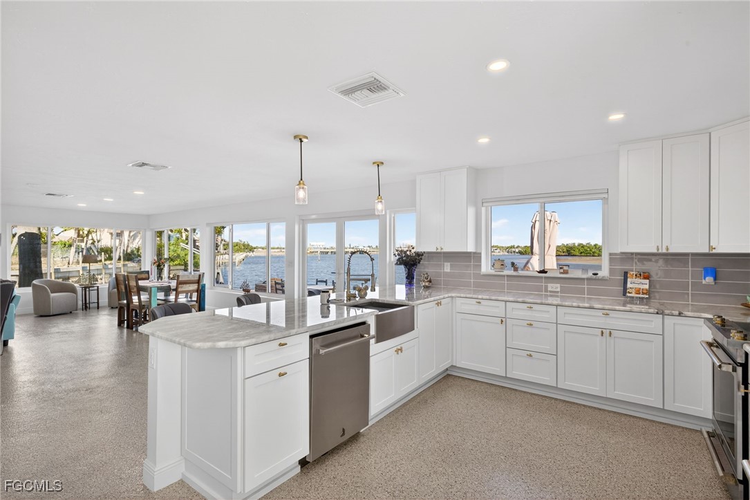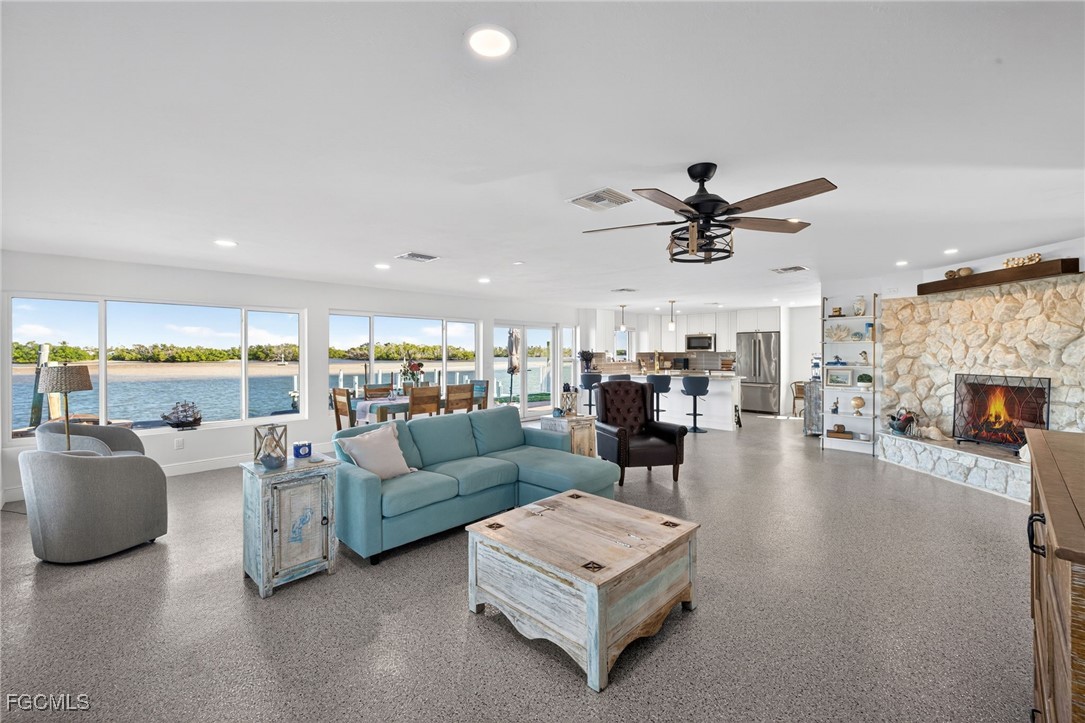 At 867 Oak Street, the luxury isn’t just in the finishes—it’s in the rare combination of an oversized lot and a layout designed to pull the beauty of the bay into every room. The interior has been thoughtfully updated to blend modern luxury with a relaxed, airy vibe. This layout gives you 2 bedrooms, 2 bathrooms, a den, & 2,326 sq. ft. of indoor living space. Walking through your front door and to the right, you'll notice the open-concept living area flows seamlessly into the dining and kitchen spaces. A standout feature of the home is the use of expansive, oversized windows along the rear of the property. These windows frame the views of the bay and allow natural light to flood the home. It also gives you endless opportunities to watch the sunrises from your sofa or chef inspired kitchen. Modern kitchen features include updated recessed lighting, stainless steel appliances, a breakfast bar/ oversized island and a beautiful tile backsplash. All bedrooms are spacious, designed to accommodate your family and friends. The den offers the perfect amount of room for an office or workout room. The bathrooms feature contemporary vanities, modern tile work in the showers, updated fixtures and even a soaking tub in the owner's suite! Around the corner from your bedrooms is a dedicated laundry area with a utility tub, a must-have for cleaning up after a day at the beach or on the water. Because the home sits on a double lot with both bayfront and canal frontage, you aren't just looking at a neighbor's dock—you have wide water views that make the interior feel much larger and more private than a standard canal-front home. You are also on the "right side" of the bridges with no height restrictions. For maximum peace of mind, the exterior is built with solid block/concrete construction and a metal roof while the interior has impact doors and windows. The property includes an attached 2-car garage and a large circular driveway, providing plenty of space for multiple vehicles and guest parking. You even have a versatile detached outbuilding, which gives you a "flex space". While the main house is designed for living and entertaining, this extra structure provides the perfect spot for specific lifestyle needs. For those who enjoy taking leisurely walks or bike rides, this home offers easy access to Estero Island/ Fort Myers Beach. Here, you will get a taste of the island life by enjoying a plethora of dining options, bars, shopping, and live music. PLUS! Only a half mile from this home, is the Key West Express ferry which means that in less than 3 hours, you could be in the Florida Keys! This is a dream home for the beach, boating, or fishing enthusiasts! Being in a desirable location and having no rental restrictions also makes for a wonderful vacation home or AirBnB! You get the quiet, residential peace of a dead-end street with the energetic "vibe" of the beach just over the Matanzas Pass Bridge. It's your chance to secure this one of a kind property!