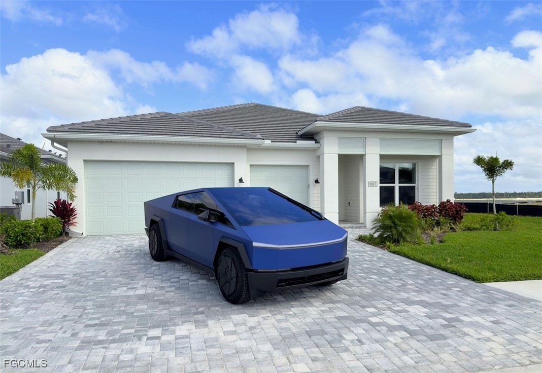 Open concept layout connects the great room, dining area, and covered lanai with stunning water views. The chef’s kitchen offers a large quartz island, stainless steel appliances, soft-close cabinetry, and walk-in pantry. The primary suite includes a custom walk-in closet and spa-style bath.