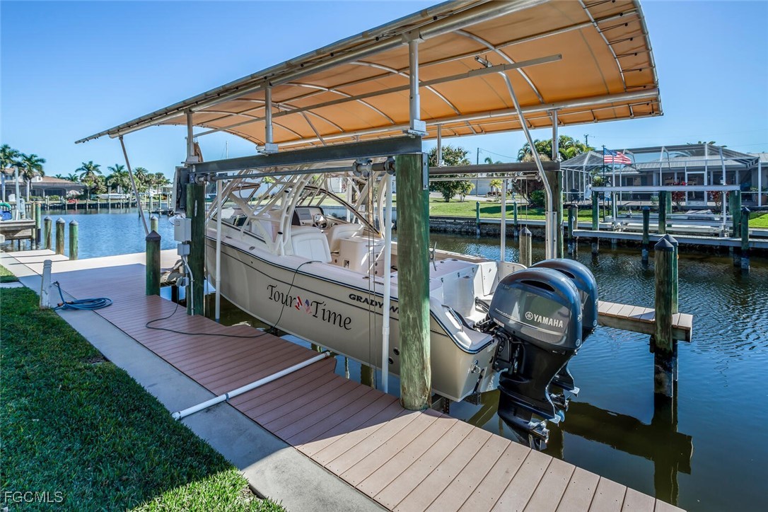 Southern exposure, direct deep-water Gulf access custom-built pool home in pristine condition, located in the highly desirable Unit 3 of South Cape Coral on a quiet cul-de-sac with an oversized hammerhead lot and additional side garden. Situated on the Juan Carlos Canal with direct access via the San Carlos and Bimini Canals to the Caloosahatchee River — perfect for boating enthusiasts. The street is lined with mature palm trees, creating a peaceful and picturesque setting.