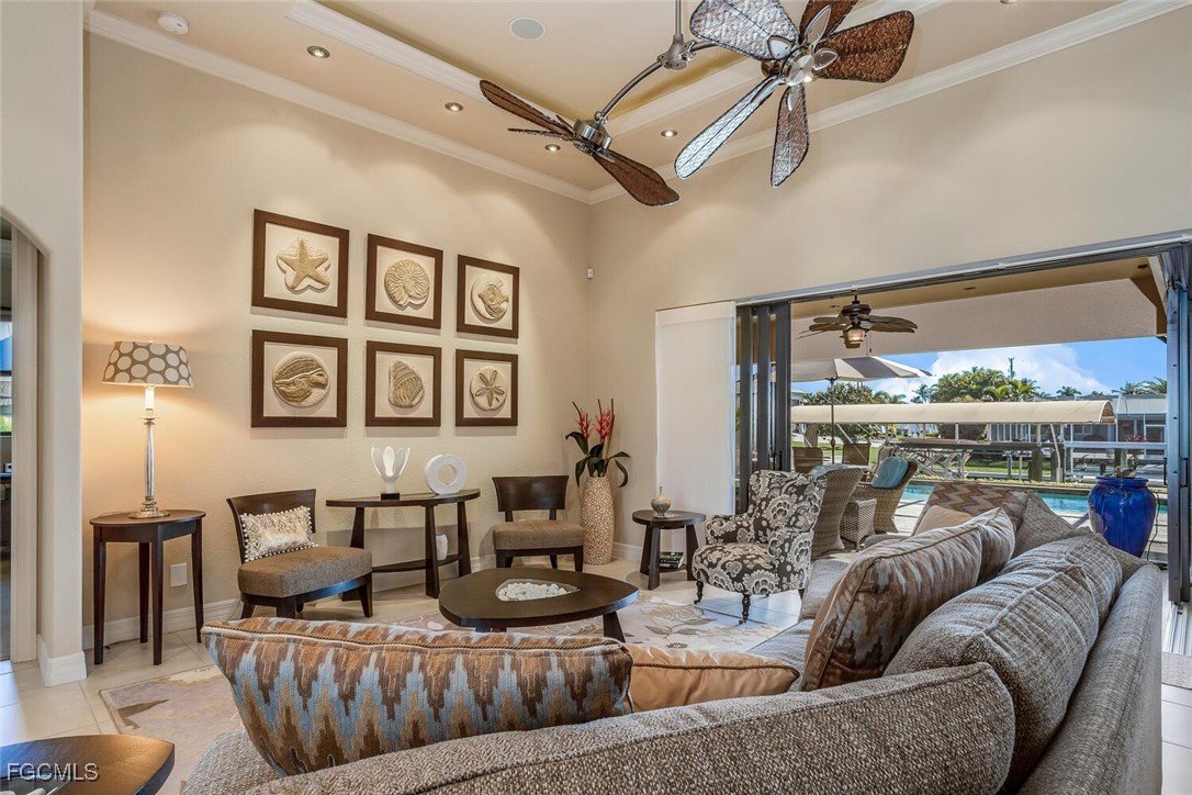 Indoor-outdoor living shines with expansive sliding doors leading to a covered lanai with lounge seating, outdoor prep station, dining area, and brand-new screened cage with picture screens. Enjoy the large saltwater pool and spa with electric heater, pavered pool deck, and outdoor shower.