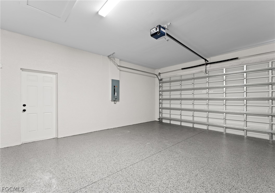 The laundry room includes a utility sink and extensive cabinetry. The backyard is located on a quiet lot with a small canal behind the property, offering added privacy.