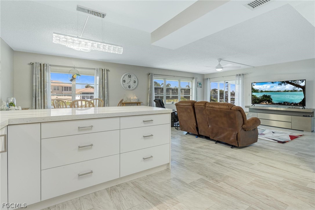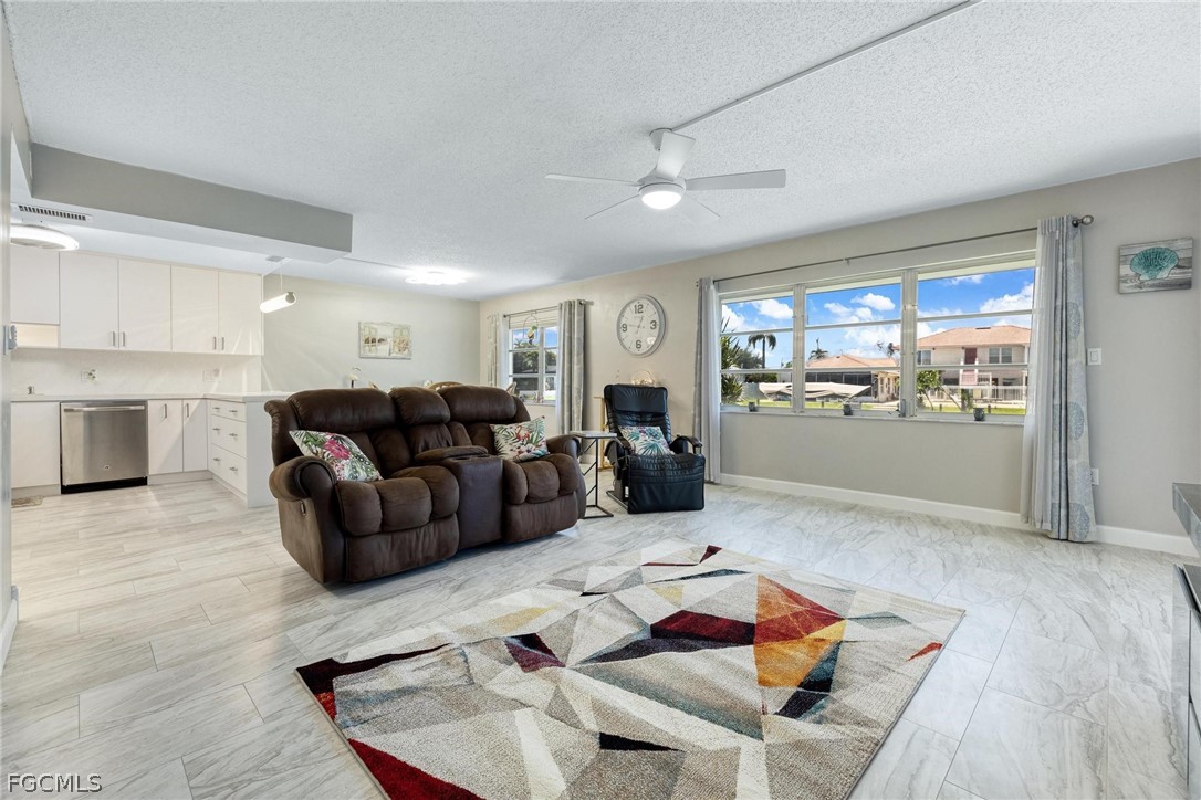 You can’t beat the beauty and location of this fully renovated gulf access condo. You can watch the sunrise, dolphins, and manatees right from your lanai or cast a rising rod right off the dock! This 1st floor condo is being offered partially furnished and offers walk out access to the community pool, and boat docks. Boat docks are first come first serve (there is current availability). There is also a new project in the works to build more docks offering additional dock space for residents. This canal is extra wide and has quick access to open water with 1 bridge out to the Caloosahatchee River. This development has many new upgrades including boat docks, captain’s walk, irrigation, and a new roof. Inside the home you will find everything is brand new including the hot water heater. A home warranty will transfer with the sale and is good through Jan '29. You will love the tile that is throughout the home, stunning white kitchen with quartz counters, two remodeled bathrooms, and all fresh updated paint colors. This home is unusually bright and airy due to multiple windows and sliders overlooking the canal! Your Primary Bedroom has its own slider to the lanai so you can wake up to views of the water! Flood insurance is covered in the HOA fee. All assessments are paid on this unit. This location is a very short bike ride/drive to downtown (47th Terr) and close to the new Bimini Basin Project which will offer health care, restaurants and shopping. See it today!