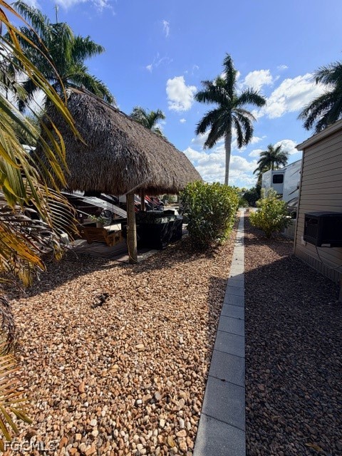Lot number one has an all concrete pad facing South. This lot offers loads of privacy and is surrounded by a vast variety of Landscaping to include an ACAI Palm, miniature date palms ACECA Palm, Sylvester Palms, one Cuban Royal Palms, one dwarf umbrella tree, several Caribbean, Royal Palms, a sago palm and numerous other varieties. The Amazon shed was placed on the lot in 2015 and measures 10 x 12. It’s presently used for storage only and it has several large windows with an 80 amp electrical box with breakers for future use. You can remodel the shed and add a shower, toilet, sink and if interested a washer and dryer hook up. Also featured on the lot is a 10‘ x 20‘ Tiki Hut that was added for some nice shade during the day. The side yard features some small tan stones as well as some grass that will be maintained by the HOA. Make this lot your number one and your Florida home.