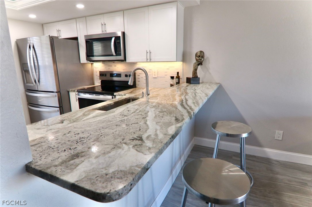 Seller will provide a credit to the buyer at closing for $5,000 plus, additionally with preferred lender will provide additional concession to the buyer. Direct Gulf Access condo in Cape Coral with only one 10.25-foot bridge to open water. This renovated 2-bedroom, 2-bath canal-front unit offers an open layout leading to a private screened lanai with peaceful water views. The home comes with 2 walk in closet. Ideal for boaters seeking quick access to the Gulf.