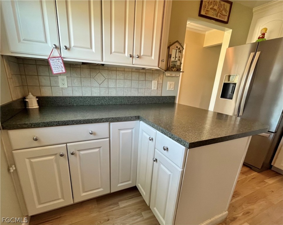 The kitchen was renovated and has so much cabinet space! An L shaped counter was also added making for more food prep area, a breakfast nook, or can be used for office work.