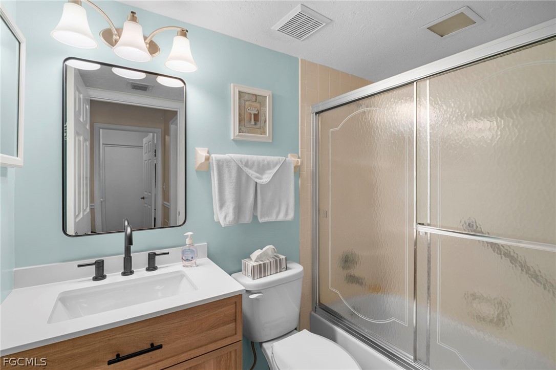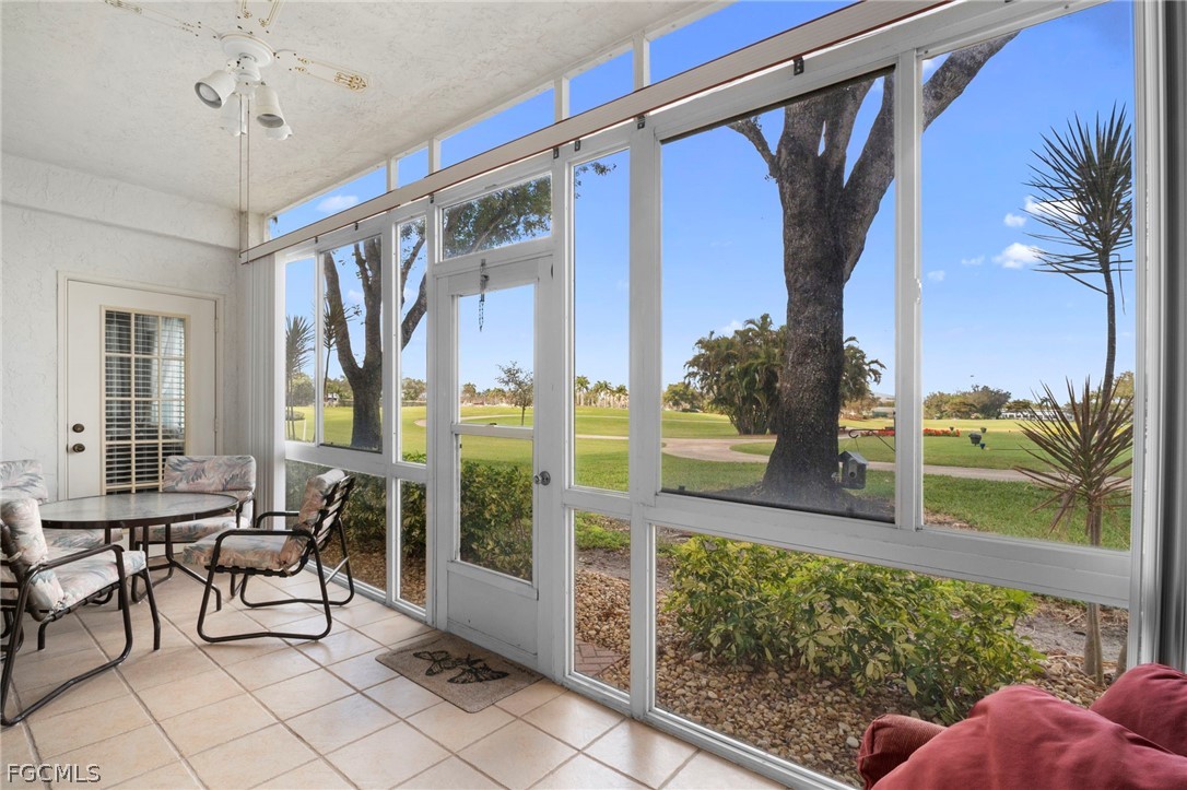Welcome to Paradise in this well-Maintained Golf Villa with 1,175 sq ft of living space in this 2 bedroom, 2-bathroom villa. The condo overlooks the 16th Tee Box off the screened-in lanai where you can relax and enjoy the beautiful views of the golf course and lake and enjoy the winter breeze while you watch your friends play. All Impact Resistant Windows Throughout for your protection. New rewired outlets, Luxury Vinyl Flooring throughout the unit. Kitchen has been upgraded with soft close cabinets with plenty of storage, and granite countertops. The primary bedroom has double closets and an ensuite bathroom with a walk-in shower. GOLF CART SPACE #367 INCLUDED!!! Seven Lakes is an active 55+ community with amenities galore, which include an Executive 18-hole Golf Course where there is unlimited Golf for 2 residents per unit. 6 Heated Pools, 6 Tennis Courts, Pickle-Ball Courts, Bocce, Shuffleboard, Billiards, Library, Cards/Game Groups, Organized Events and Outings through our Full Recreation Department can help you get involved. A monthly Newsletter that puts out Calendar of Events. Tons of clubs, auditorium which host dinners and dances. A bus to take residents to other activities outside the community. Exercise Room, Lapidary, Awesome Library! Private Restaurant & Bar Has Weekly Events like Karaoke and Trivia, Theme Dinners & Happy Hours. Start Living the Seven Lakes Lifestyle Seven Lakes Golf & Tennis has Premium Location in South Fort Myers. Close to Airport, Shops and Restaurants. Minutes from the Sanibel, Captiva & Fort Myers Beaches. Come Take a look at this golf Villa and make it your next home.