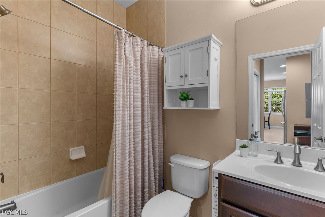 Desirable end-unit with private preserve views in a prime Fort Myers location near the beaches. This 3 bedroom plus den, 2 bathroom condo features a spacious open-concept layout with tile flooring throughout the main living areas and abundant natural light from additional end-unit windows. The kitchen is appointed with granite countertops, stainless steel appliances, rich wood cabinetry, and a breakfast bar overlooking the living and dining spaces—ideal for everyday living and entertaining. The refrigerator and stove were replaced in November 2025 and the dishwasher was replaced in November 2024. All three appliances include transferable protection plans for added peace of mind. Fresh interior paint gives the home a bright, move-in-ready feel. The bedrooms showcase dark wood-look plank flooring that adds warmth and continuity throughout the home while offering easy maintenance and a modern finish. Enjoy relaxing on the screened lanai with peaceful, lush preserve views. Installed in 2025, the property features a new 15.2 SEER2, 3-ton American Standard air-conditioning system, delivering enhanced energy efficiency and dependable performance. Additional highlights include an attached garage and a pavered driveway that enhances curb appeal. Perfect for full-time living or a seasonal retreat. Make sure to check out the video virtual tours!