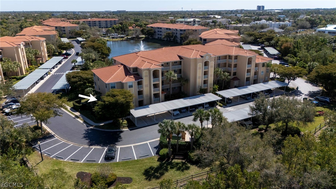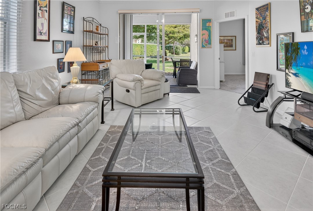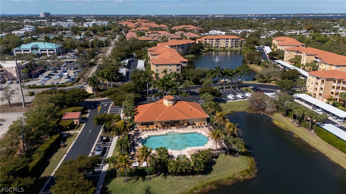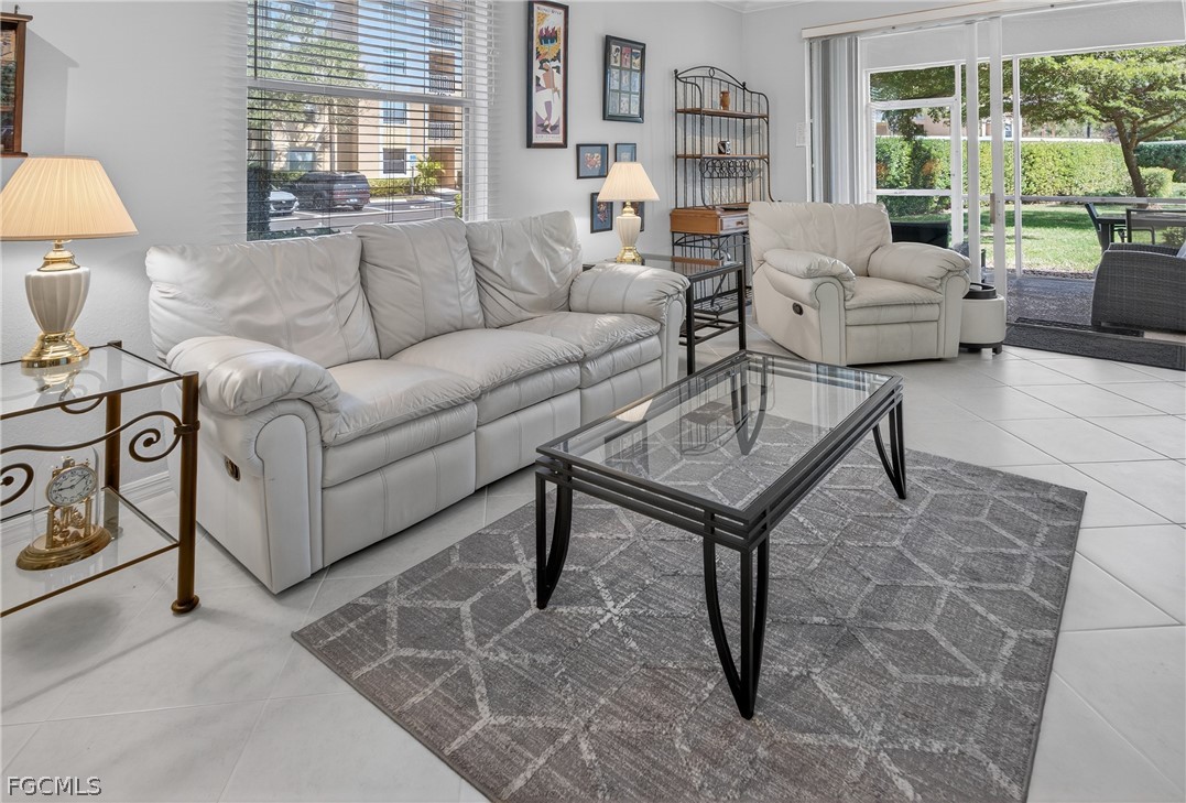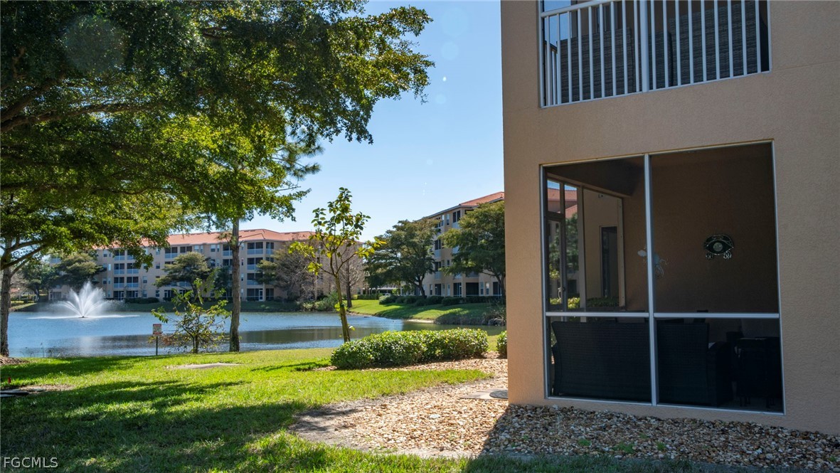 WOW! Rarely available end unit with extra windows for lots of natural light, a stunning lake view from the lanai, and located on the ground floor (no stairs needed ever) can be yours in the wildly popular Terraces at Riverwalk community, conveniently located within walking distance of medical offices, shopping & dining, and a short drive to the beaches of SWFL. This open concept, updated & fully turnkey unit with split bedroom floorplan can be your slice of paradise, offering: a massive eat-in quartz kitchen with glass tile backsplash, pantry, breakfast nook, & long bar for entertaining friends & family, living/dining area including large window & slider leading to the screened lanai overlooking the lake, primary bedroom with ensuite shower bath & dual walk-in closets, generously sized 2nd bedroom also with walk-in closet, bonus room off living/dining area for den, office or dining with pocket doors, interior laundry room, 2nd bath with tub/shower combo, easy care ceramic tile installed on the diagonal throughout public areas & newer plush carpet in the bedrooms & den, newer water heater & dishwasher, assigned covered parking as well as plenty of guest parking, and large outdoor storage room conveniently located just outside your front door. The furnishings are sleek & modern including brand-new king-size bed in the primary suite, king-size bed in the 2nd bedroom, 2 twins & desk in the den, and leather couch & recliner in living area with durable metal & glass dining set, end tables, & coffee table. No flooding from hurricanes Ian, Milton or Helene. The Terraces at Riverwalk is a lovely community offering a clubhouse with meeting space & work-out room, large outdoor pool with spa, BBQ grills, and is expertly maintained with new wind mitigated roofing & exterior painting in 2023, the reserve study completed in 2024, and is located in unincorporated Lee County, meaning no CDD or city taxes. Information is expected to be accurate, but Buyers should always perform their own due diligence. Wall art in living area is excluded. Sound board, espresso machine, and keurig belong to tenant.