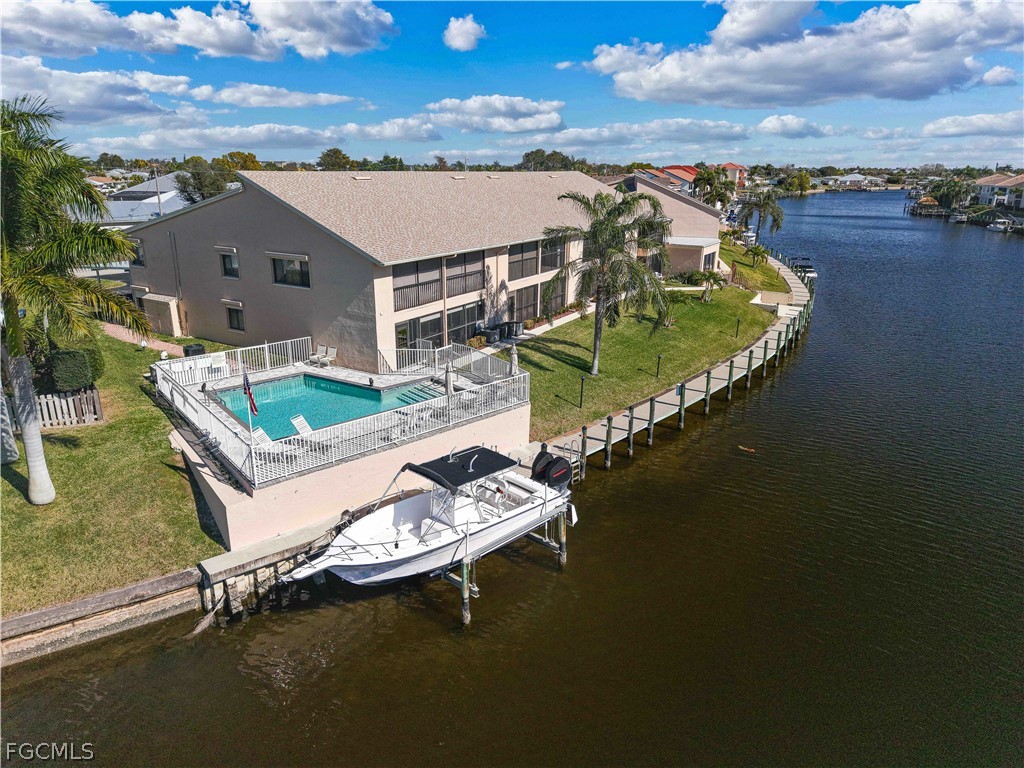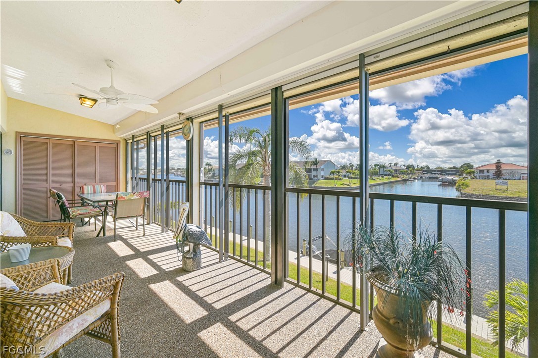 Welcome to your dream waterfront condo in one of Cape Coral's most desirable locations. This stunning two-bedroom, two-bathroom second-floor residence offers an outstanding floor plan thoughtfully designed to maximize the breathtaking wide intersecting waterfront views of the Rubicon Canal. With cathedral volume ceilings soaring above, every moment spent inside feels expansive and filled with natural light, while the canal intersection below provides a mesmerizing panorama that never grows old.