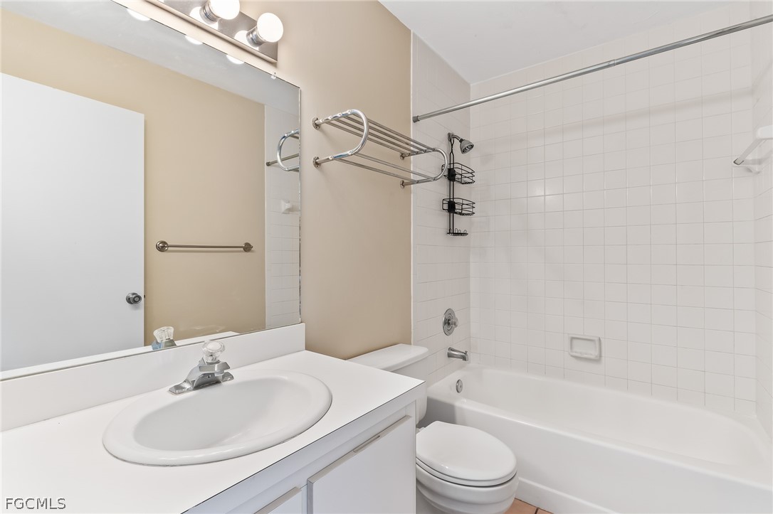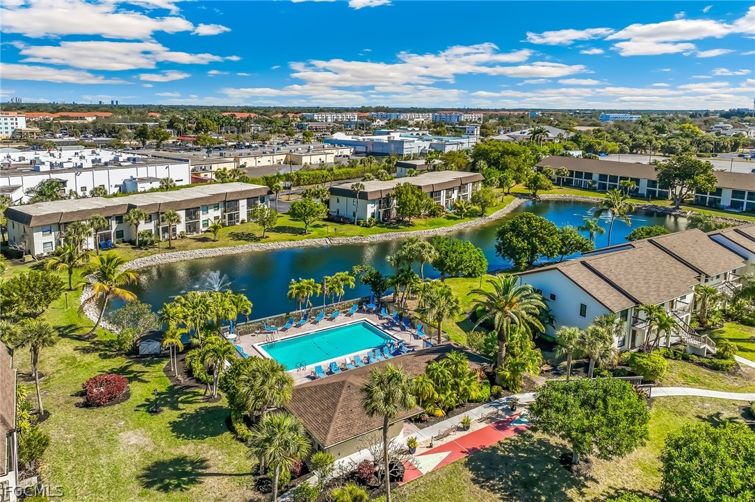 Top floor, end unit condo with 2 bedrooms and a den has soaring cathedral ceiling and extra windows making it light and bright. Move-in ready and spacious 2 Bedroom with Den condo in a perfect location off McGregor between Cypress Lake and College Pkwy. Walk to restaurants, grocery and a quick drive to the beaches. Lania has pretty views of a flowering bougainvillea. Washer and dryer on lanai. Primary bedroom with ensuite bath. Large, open den is perfect for a home office or kids' playroom. Den has closet and can easily be converted to a 3rd bedroom. Central Park South has low condo fees! Community pool overlooking the lake. Perfect seasonal home or full-time residence.