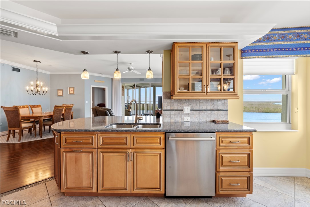Perched on the 7th floor, this exceptional three-bedroom, three-bath residence showcases sweeping, unobstructed views of Estero Bay that immediately impress upon entry. Floor-to-ceiling vistas fill the home with natural light, creating a serene coastal backdrop from sunrise to sunset. The gourmet kitchen is thoughtfully appointed for both everyday living and entertaining, featuring premium appliances, quartz countertops, and a dedicated wine refrigerator. The spacious primary suite serves as a private retreat, offering tranquil water views, a spa-inspired bath with an expansive walk-in shower, and a generous walk-in closet. The second bedroom provides comfort and functionality with custom built-in closets, while the versatile third bedroom/den includes a Murphy bed and built-in desk—ideal for guests or a sophisticated home office. Located in the highly sought-after Waterside community, residents enjoy an impressive array of amenities designed for a true resort lifestyle. Spend your days lounging by the pool, relaxing in the spa or sauna, staying active in the fitness center, or gathering with neighbors in the community room. Tennis and pickleball courts, along with scenic walking paths, offer abundant opportunities for recreation. One of the most coveted features of living at Waterside on Bay Beach is the exclusive beach access with resident parking—your private gateway to the Gulf and the very best of Florida coastal living. This is more than a condominium—it’s an elevated waterfront lifestyle where every day feels like a vacation.