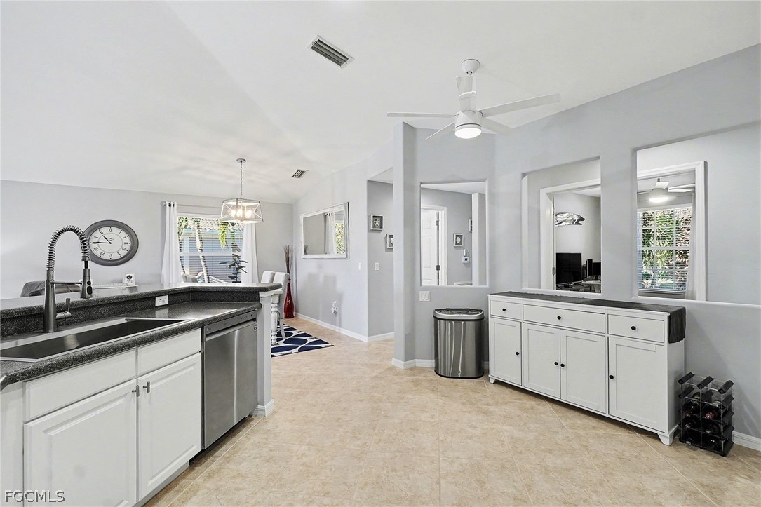 If you have been looking for the perfect property at the Award Winning Colonial Country Club to escape the winter cold- look no further! This light, bright, modern and beautifully maintained end unit- "The Orchid" will check all the boxes! Upon entry, you will enjoy an abundance of natural light and a feeling of spaciousness- all rooms feature oversized windows; tall ceilings throughout and feature tasteful furnishings and artwork. The home offers 2 spacious bedrooms with great separation and large closets. A den can serve as an office or third bedroom. The 2 full bathrooms feature newer sleek quartz countertops, upgraded lighting and fixtures. The bedroom and den flooring has been upgraded to luxury vinyl plank in neutral greige tones to match the light grey and crisp white paint tones and decor throughout the unit. The lighting fixtures and fans been upgraded and feature LED bulbs for cool energy efficiency. The main living area features a oversized tiled open floor plan with high ceilings and a triple slider that opens out to the screened lanai for a seamless transition from indoor to outdoor living. The updated kitchen features a breakfast bar, white cabinetry, newer LG stainless steel appliance suite, an oversized sink, a separate coffee bar, a large pantry closet and a utility closet with a full sized washer and dryer. Accordion shutters are installed for easy and effective storm protection. A newer roof, newer exterior paint, newer hot water tank, newer keyless entry pad, a covered carport and private storage closet for bikes and beach chairs as well as professional landscaping make for easy, trouble free living. Residents and their guests enjoy the finest amenities including limited pay as you play access to the Gordon Lewis designed Troon Managed Golf Course. Other amenities include multiple sparking pools; numerous well maintained and fully lit clay tennis courts; newly refinished pickle ball courts and two bocce courts- all offered with leagues galore. Stay in top shape at the newly remodeled state of the art fitness center with full slate of fitness and aqua fitness offerings; enjoy dinner at the beautifully remodeled Clubhouse with full restaurant and bar with many special events with entertainment. Check out a book at the on-site library or meet with friends over a card game or get crafty at the community center. Walk or bike along miles of winding streets with sidewalks or step outside your door and marvel at the nature to behold inside the large wooded wildlife preserve -all within the gates of this friendly community. Close to all conveniences and the award winning sandy beaches, fabulous shopping and dining, all highways and major routes and only 15 minutes to RSW International Airport. START ENJOYING YOUR BEST SWFL LIFE TODAY!