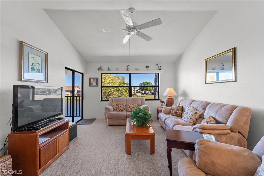 Welcome to 8625 Charter Club Circle #6, a lakefront residence offering spacious living, tranquil water views, and the effortless Southwest Florida lifestyle within the highly desirable Club at Crystal Lake community. This light-filled second-floor condominium features an inviting open-concept layout highlighted by soaring vaulted ceilings, expansive living and dining areas, and large windows that frame peaceful lake and landscaped views while filling the home with natural light. The generous living space flows seamlessly to a private screened lanai — the perfect setting to enjoy morning coffee, evening sunsets, or quiet relaxation overlooking the water and walking paths below. The kitchen offers abundant cabinetry, ample counter space, and a functional pass-through breakfast bar that keeps the home connected for everyday living or entertaining guests. Both bedrooms are comfortably sized, including a spacious primary suite with walk-in closet storage and direct access to the main living areas, while the guest bedroom provides flexibility for visitors, seasonal use, or a home office. Neutral finishes throughout create a clean and welcoming canvas ready for personal touches or future updates. Additional highlights include an interior laundry area, assigned covered parking, and extra storage for added convenience. Residents of The Club at Crystal Lake enjoy a well-maintained, amenity-rich environment featuring multiple community pools and spas, tennis courts, walking paths, clubhouse gathering spaces, and beautifully landscaped grounds designed for an active yet relaxed lifestyle. Ideally located in the heart of South Fort Myers, this residence is just minutes from Lakes Park, shopping, dining, medical facilities, beaches, RSW International Airport, and everyday conveniences. Whether you are seeking a full-time residence, seasonal retreat, or investment opportunity, this lakefront condo delivers comfort, location, and value in one of Fort Myers’ most established communities.