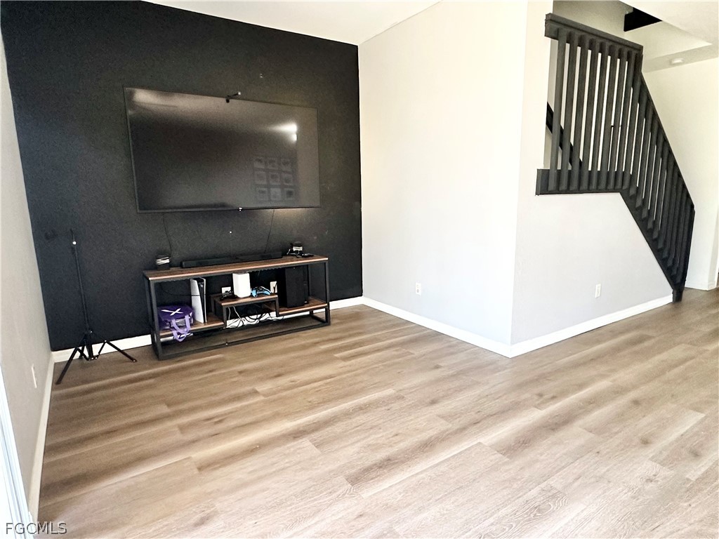 Stunning Lakefront Townhome in The Colonnade at The Forum! Discover the perfect blend of modern updates and Florida lifestyle in this beautifully maintained 3-bedroom, 2 1/2-bathroom townhome nestled in the highly sought-after gated community of The Colonnade at The Forum in Fort Myers. Step inside and be welcomed by a bright, open-concept living and dining area featuring vinyl plank flooring, a bold designer accent wall, and a dramatic black staircase that makes a lasting first impression. The spacious living room flows seamlessly to the dining area ideal for entertaining while a convenient half bath and powder room round out the main level. The kitchen offers ample cabinetry, full appliances including a Whirlpool refrigerator, electric range, built-in microwave, and stainless steel dishwasher all overlooking the main living space. Upstairs, retreat to the generous primary suite complete with an en-suite bath featuring dual sinks, a separate walk-in glass shower, a private water closet, and an expansive walk-in closet. Two additional bedrooms share a full bath, and the versatile loft space is perfect as a home office, playroom, or flex room. Step out back and enjoy breathtaking serene lake views from your screened lanai a true slice of paradise to start your mornings or unwind in the evenings.