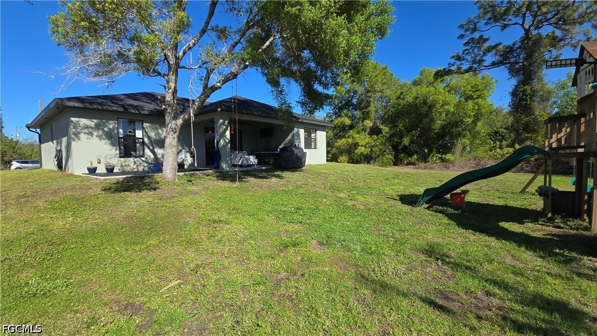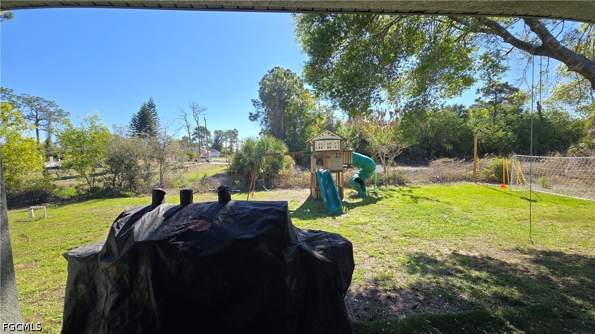 Beautiful 3 bedroom, 2 bath and a mix use Den home featuring an open-concept layout with cathedral ceilings that enhance the sense of space and natural light. Concrete block construction, the home offers a modern kitchen with plenty of cabinets, stainless steel appliances, along with a extended lanai ideal for enjoying the outdoor Florida lifestyle (located in a dead end Street) 500 gallons tank Reverse Osmosis water treatment system already installed for your benefit and all round Irrigation system.