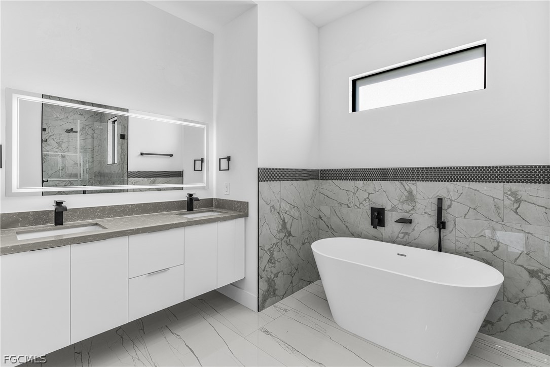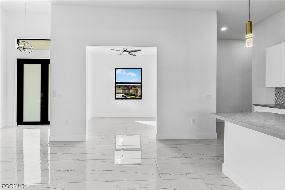 Introducing a stunning example of contemporary luxury living: this beautiful new construction boasts a modern aesthetic that is both chic and functional. Step into the spacious kitchen, featuring a sleek island with high-end stainless steel appliances and quartz countertops, perfect for cooking and entertaining. European-style acrylic cabinets provide ample storage, complementing the clean, minimalist look. Throughout the home, porcelain tile flooring adds elegance and durability. In the bathrooms, LED light mirrors combine style with practicality for a truly indulgent experience. With four bedrooms and two and a half bathrooms, including a master suite with his and her sinks and an elegant tub, comfort and luxury abound. From the floating modern vanities to the acrylic European style closet doors, every detail has been carefully curated for modern living at its finest. And with an extended lanai and sleek finishes, calling this paradise is an understatement.