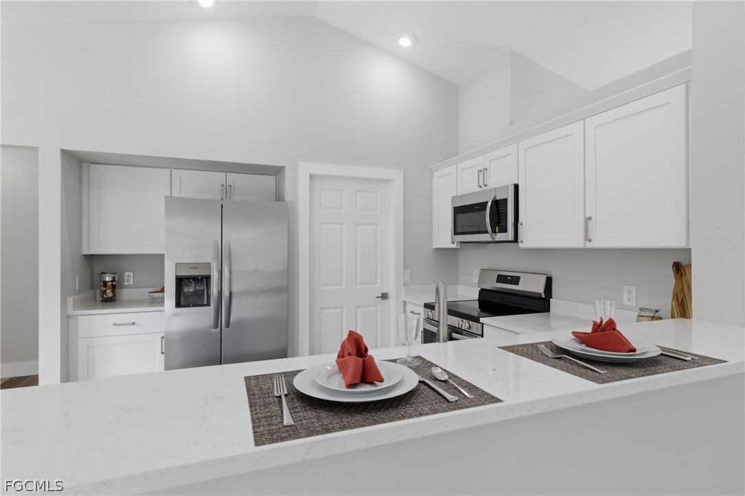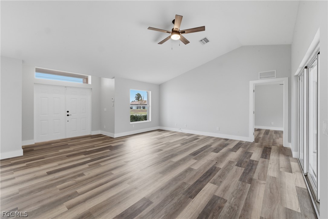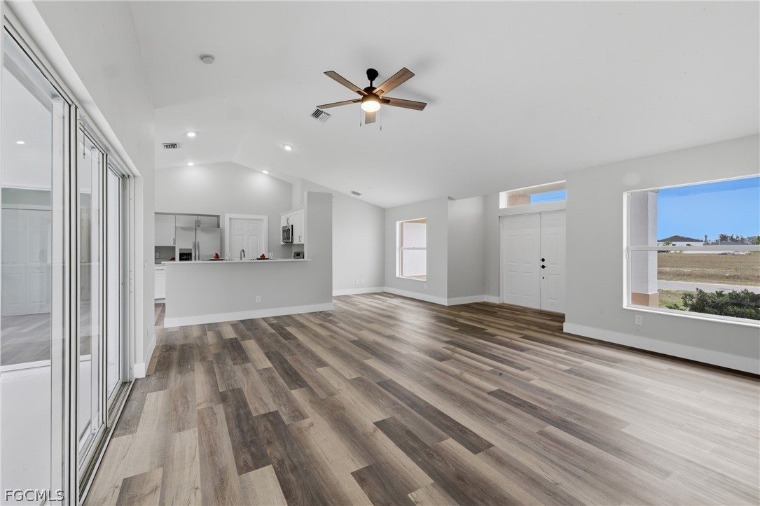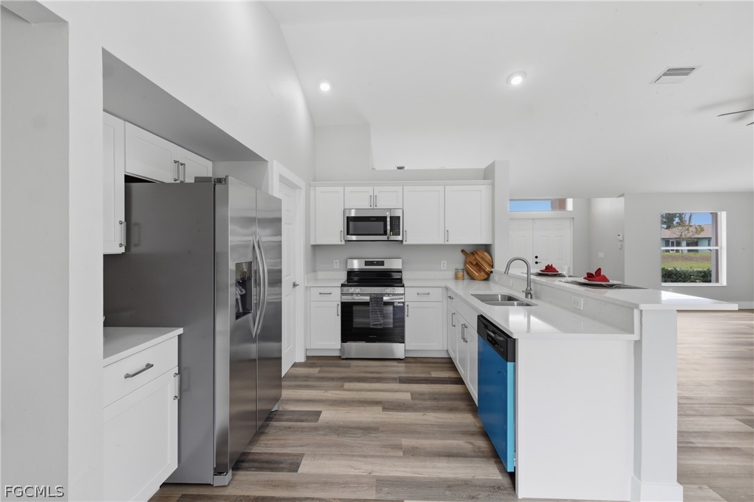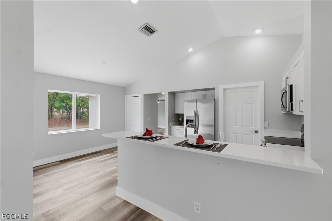 Stunning, completely remodeled home located in a No Flood Zone area in desirable SW Cape Coral! This beautifully reimagined 3-bedroom, 2-bath residence with a 2-car garage offers modern style and quality finishes throughout. Step inside to discover luxury vinyl plank flooring, elegant 6-inch wood baseboards, and fresh interior and exterior paint, creating a bright and sophisticated atmosphere.