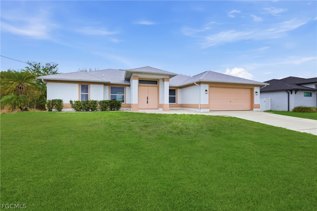 Relax and unwind in the screened lanai, offering a comfortable outdoor space to enjoy the Florida lifestyle year-round. Ideally located in the heart of Cape Coral, this home is within walking distance to shopping, restaurants, and everyday conveniences. Freshly painted garage including the floor and a new garage door opener! Everything is NEW!! AC 2023, Roof 2023, Utilities went in 2022