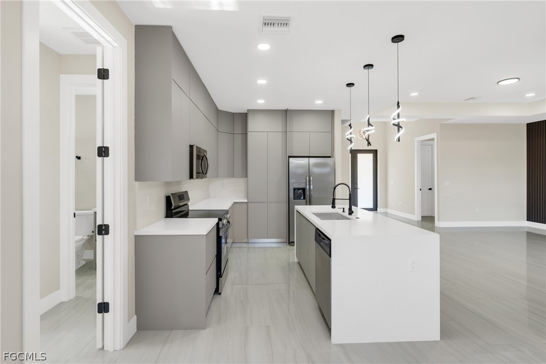 New construction home located Lehigh Acres. This beautiful property features 4 bedrooms and 3 bathrooms with a modern open-concept layout designed for comfort and functionality. The kitchen offers a spacious center island, sleek cabinetry, and included appliances, perfect for everyday living and entertaining. Tile flooring runs throughout the main living areas, adding both style and durability.