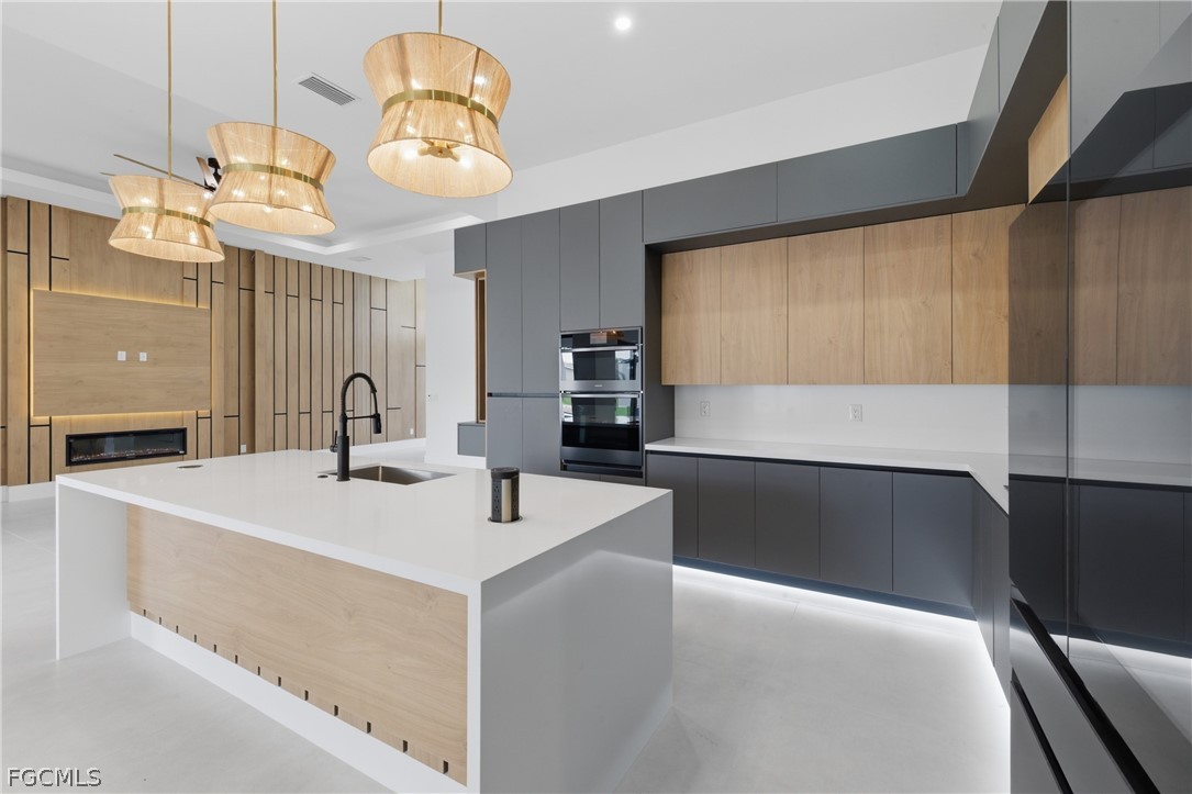 Welcome to this spectacular newly built house, were modern design merges with comfort and elegance. Located in one of the most coveted areas of Cape Coral, this residence has living area 2416 with 4 bedrooms and 4 bathrooms combines large spaces, high-end finishes and an intelligent distribution. Enjoy the natural luminosity that invades every corner, an open concept kitchen with state-of-the-art appliances, tile ceilings, and a private pool and spa with screen that becomes your personal oasis. This property combines modern architecture, luxury and comfort, becoming a unique opportunity for those looking for a new house ready to enjoy. Do not miss the opportunity to live in this jewel!