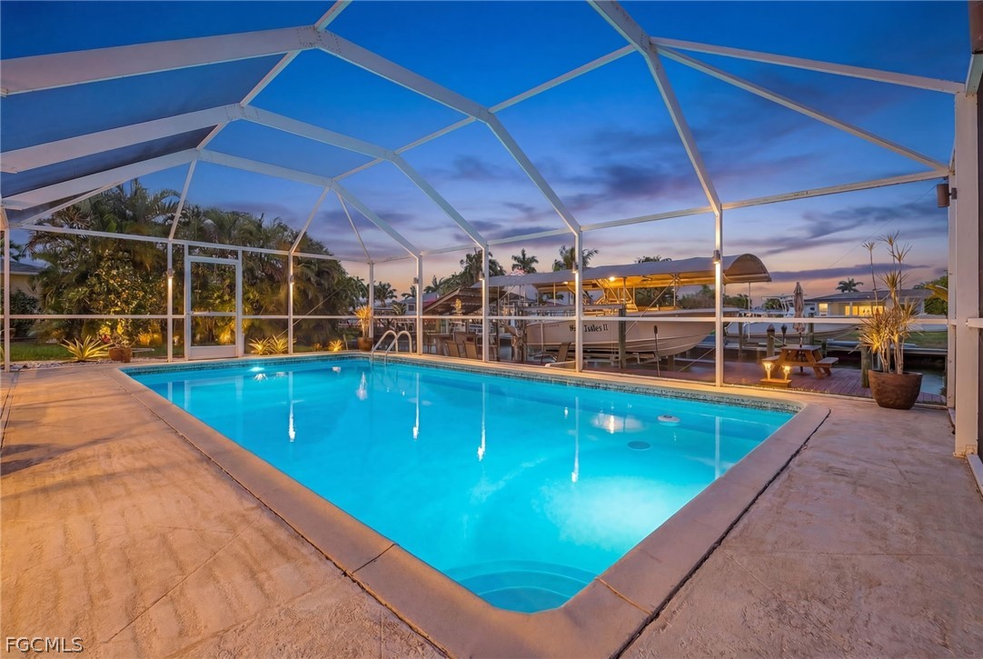 Direct Sailboat Access!!! This beautifully upgraded waterfront property offers exceptional outdoor living and peace of mind with extensive recent improvements and premium storm protection features. Boaters will love the wraparound dock with canopy, dock lighting, filet table, tiki bar, and boat lift—creating the perfect setup for relaxing days on the water. The property also includes boat trailer and RV storage, a fenced yard, and mature fruit trees including banana, lime, lemon, and tangerine.
