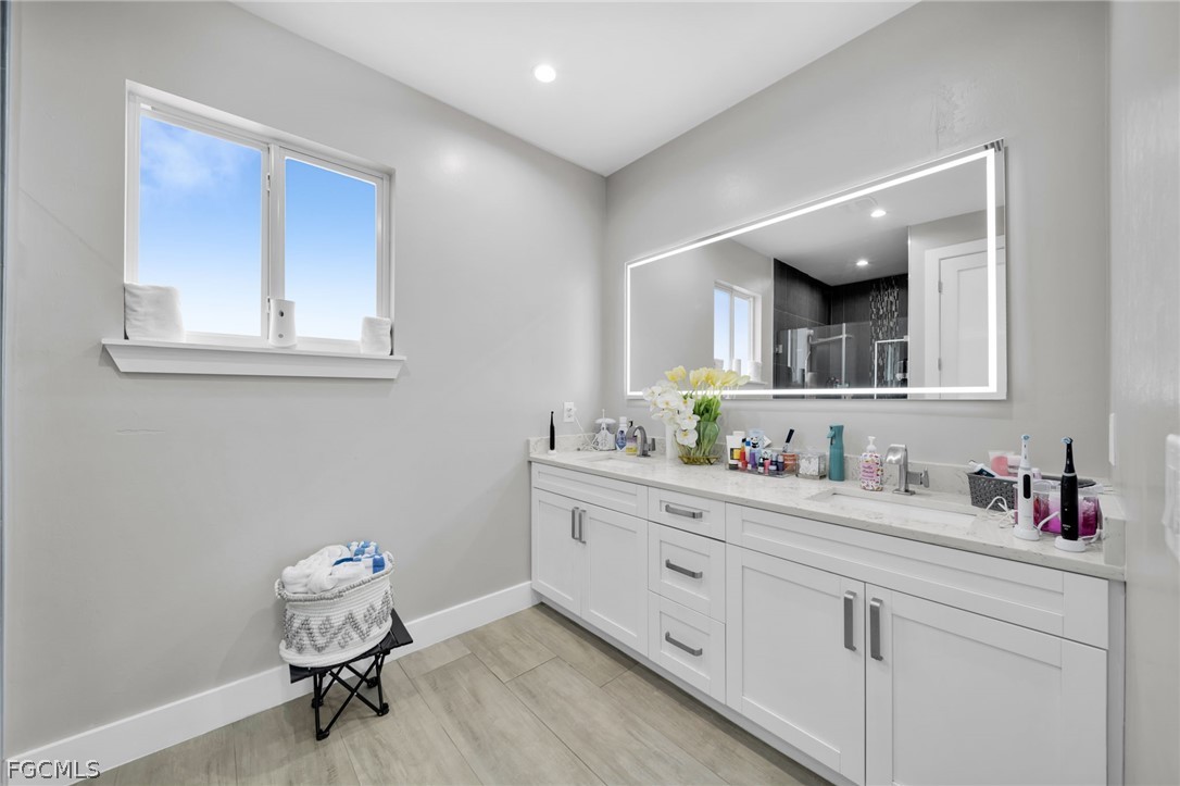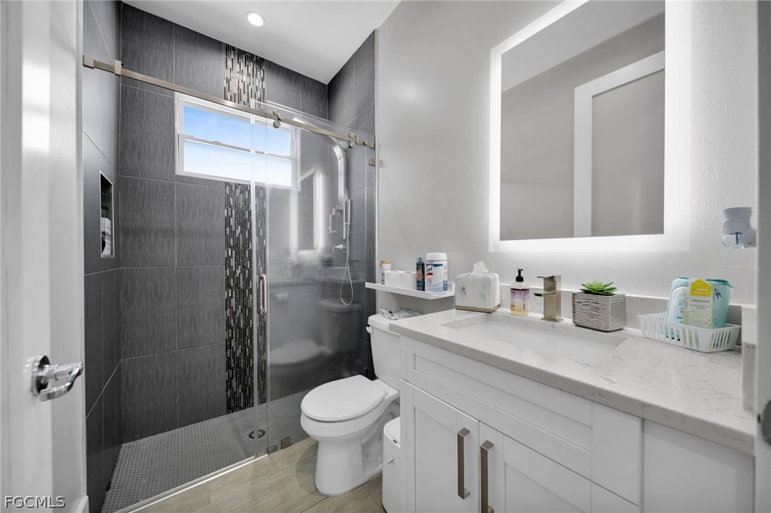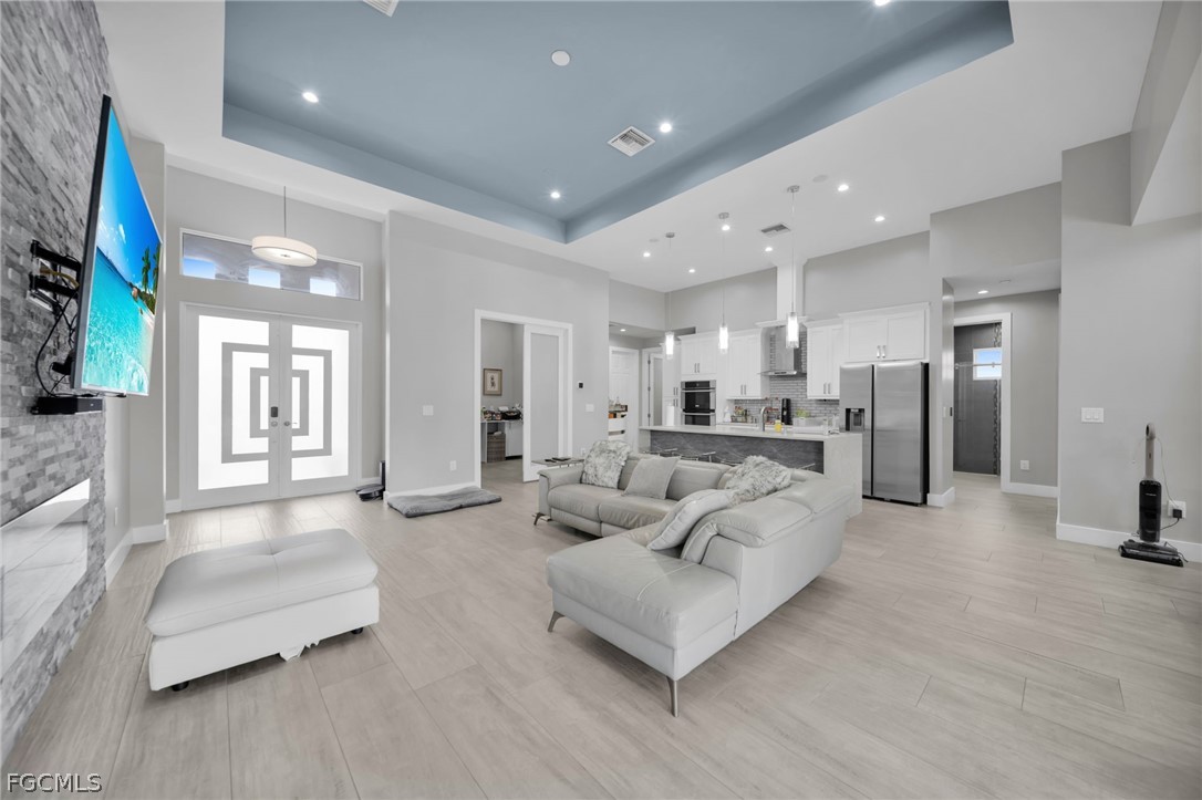 Stunning 3-bedroom, 2-bath home in a desirable area of Lehigh Acres offering luxury, privacy, and space on a rare oversized 0.6-acre fully fenced lot. This property features a sparkling private pool and an extended driveway with ample parking. Built for durability and peace of mind, it includes impact windows and doors throughout. Inside, enjoy tile flooring, a modern chef-style kitchen with beautiful cabinetry, a sleek quartz island, and high-end appliances. Custom-designed closets add both elegance and functionality. Step outside to an expansive backyard with endless possibilities—perfect for entertaining, outdoor living, or creating your dream oasis. A rare opportunity in a prime location.