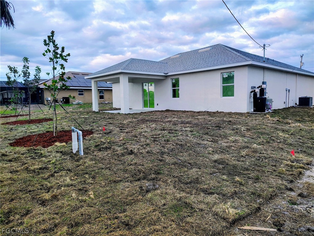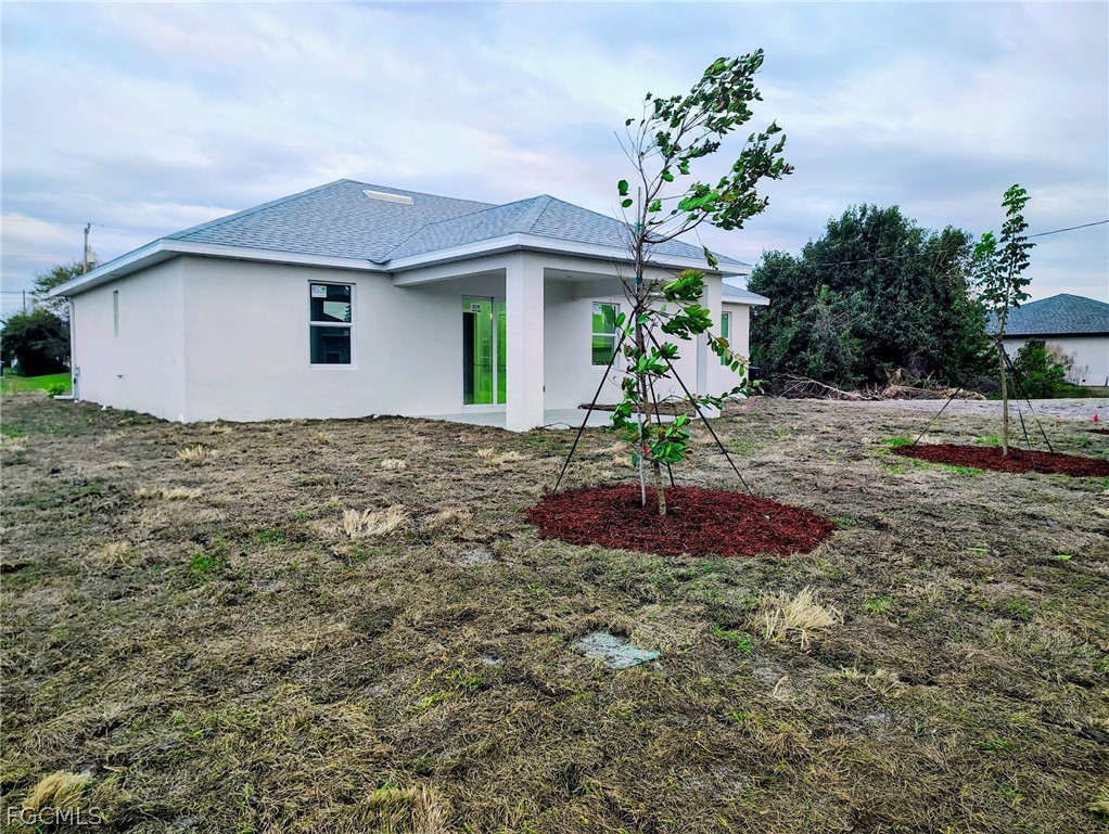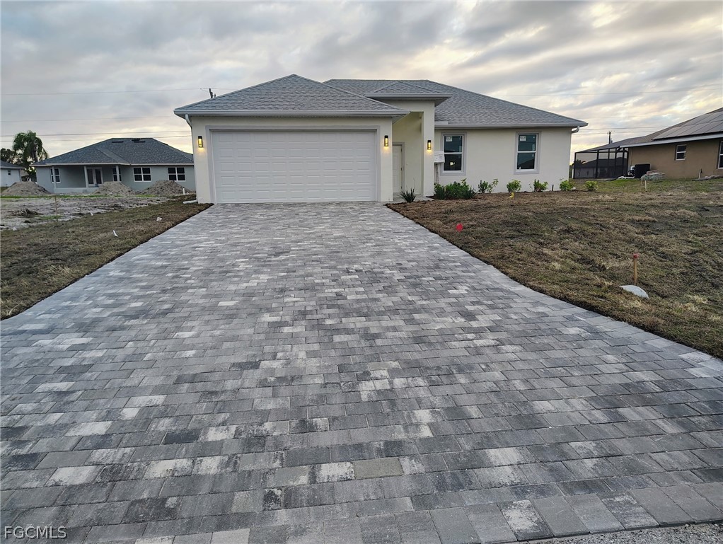 Ready to move into this beautiful 2026 new construction home? Close to schools, shopping, dining, parks and more! This custom home offers 1,532 sq ft of living area, with 4 bedrooms and 2 baths. The main living area features a vaulted ceiling that connects seamlessly to the dining area and a large freestanding island with a granite countertop. The kitchen pantry boasts designer wood cabinetry, granite countertops, and stainless steel appliances. All windows and doors are impact-resistant. Sliding doors in the family room provide direct access to an oversized tile lanai, and the house features tile throughout. The private master suite includes a recessed ceiling with a raised center panel, two walk-in closets, and a spacious bathroom and shower with a wood designer vanity, dual sinks, and granite countertop and privet toilet. On the opposite side, of the house there are three bedrooms that share a guest bathroom, linen and that have a designer wood vanity and a granite countertop. The home features oversized 18.5-foot garage door openings for two vehicles, three smart flood vents for water and debris exits, which may potentially reduce insurance costs, and a oversized paver driveway that accommodates four SUVs. Sprinklers throughout the house and a septic lift station for the sewer system that prevents sewage backups and odor issues. Proper design helps prevent waste from sitting too long, which can cause bacteria growth and odors.