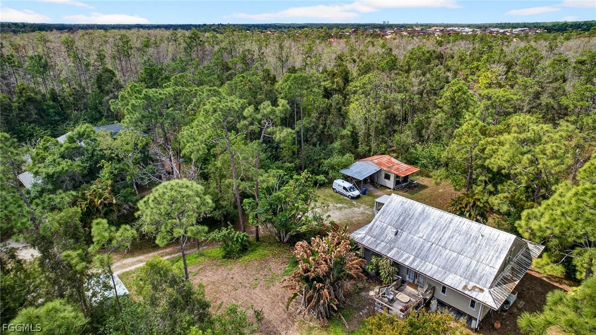 Rarely Available Acreage Property on Palomino Lane! Purchase this 2.41 acre parcel with home, separately or in conjunction with adjacent property at 11600 Palomino Lane for a total of 4.77 acres with two homes! Elevated 1987-built home with 2 bedrooms + den, 1 bathroom, a kitchen with gas range and soaring ceilings with an artist's loft. Parquet floor, wood balcony, carport and storage under home. Detached storage shed, lake with fish and mature vegetation. Western rear exposure with dense vegetation in the back 1/2 of parcel, and surrounded by 175 acres of vacant land which is not to be developed. Palomino Lane is a paved, county-maintained road with a stoplight at Daniels Parkway intersection for your safety and convenience. Work is currently underway to widen Palomino Lane and include two left-turn lanes, one through lane and an exclusive right-turn lane for access to Daniels Parkway which will make any commute a breeze! (The project begins March 23rd and is expected to last six weeks.) This roadway project will further increase home values in the area. If you've been looking for an opportunity to own acreage in the heart of Fort Myers, now is your chance! Check out the virtual tour online, then contact your agent for a private showing today!