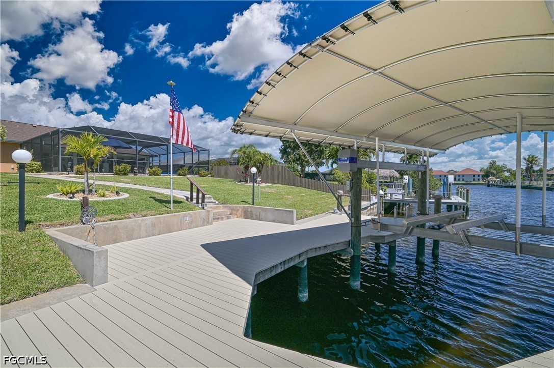 Boaters will fall in love with the impressive wrap-around dock (2023), complete with a canopy (2024) and a 13,000 lb boat lift (2023) delivering easy Gulf access right from your backyard. Truly a boater’s paradise!