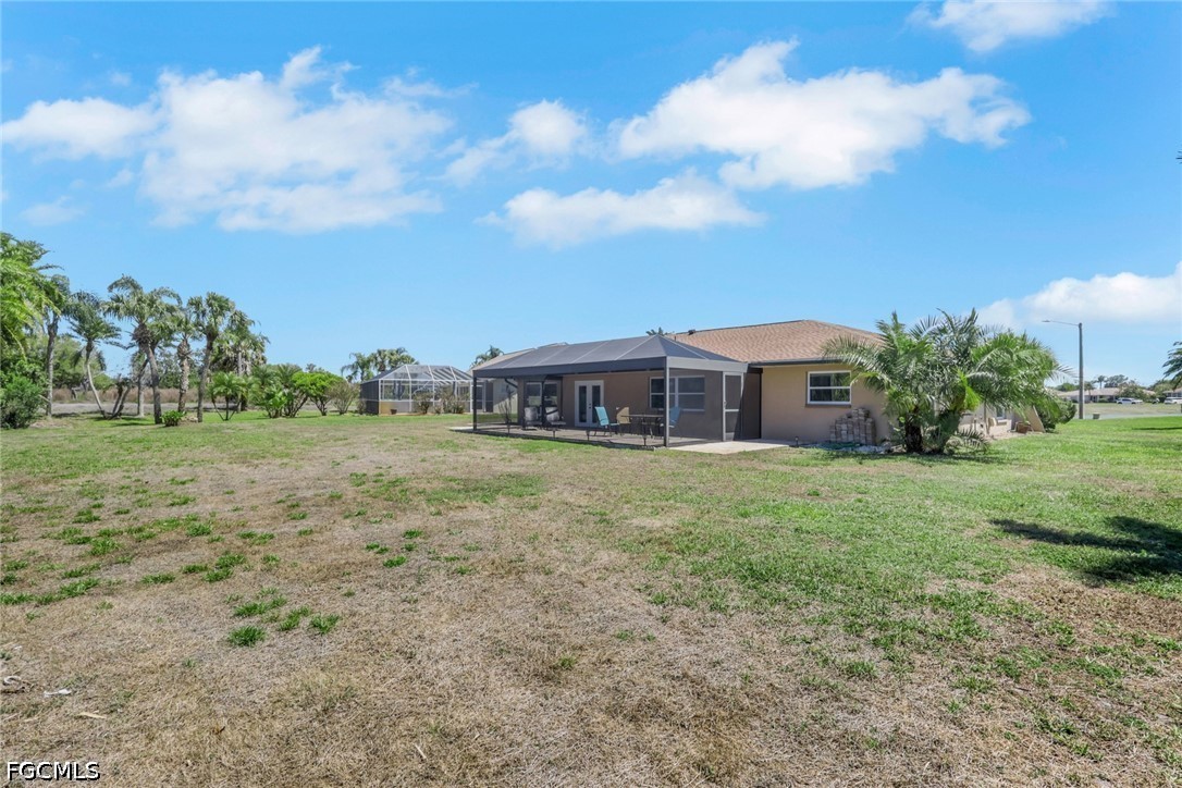 Welcome to your private slice of paradise in the heart of Lehigh Acres! Situated on an oversized 0.73-acre homesite, this beautifully maintained and fully furnished 3-bedroom, 2.5-bath home offers exceptional space, privacy, and true Florida lifestyle living. The property backs to a former golf course, providing peaceful views and no rear neighbors, creating a quiet and open setting rarely found in the area.
