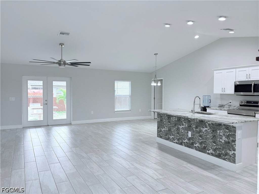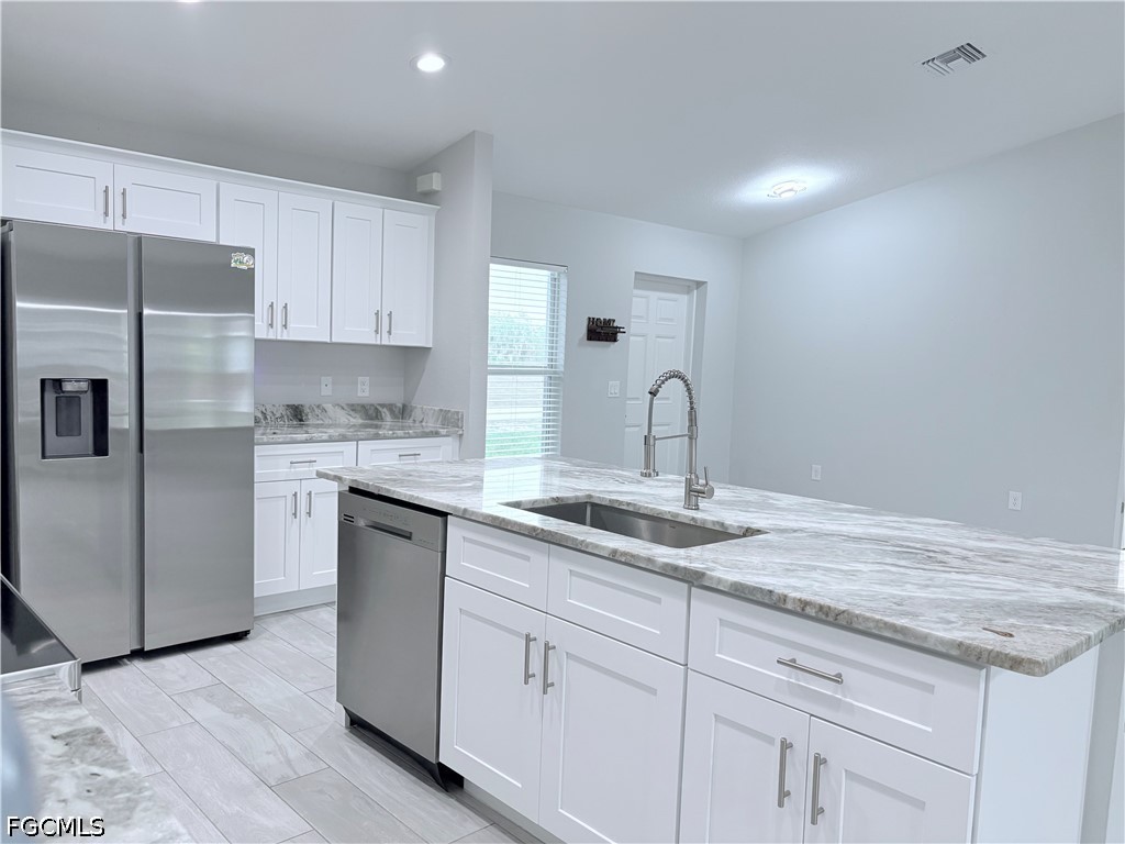 This beautiful home, located in Cape Coral was built in 2022, offers 1,440 square feet of modern, spacious living. It features three bedrooms and two bathrooms, with a large kitchen that boasts elegant granite countertops and stainless steel appliances. The bathrooms are beautifully appointed, and the home has ceramic tile floors throughout. The driveway is paved, and outside. The garage is finished with epoxy flooring. Don’t miss the opportunity to see this stunning property!