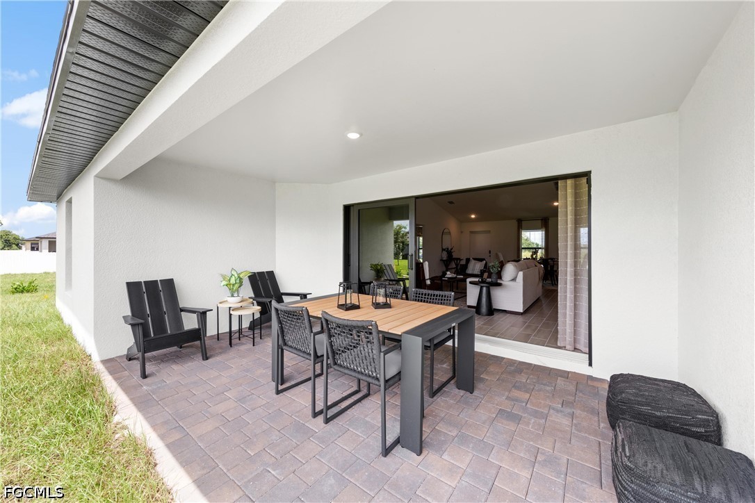 MOVE-IN READY – new construction with warranty! CITY WATER/SEWER HOMESITE – ALL ASSESSMENTS PAID! The St. Augustine blends elegant design with everyday functionality, offering the perfect balance of indoor comfort and outdoor living. A welcoming covered front porch leads into the heart of the home, where an open-concept layout with a vaulted ceiling creates a sense of spaciousness and flow. The dining area with double windows, gourmet kitchen with a freestanding island and pantry, and expansive Great Room with sliding glass doors all work together to maximize natural light and create an inviting atmosphere. Step outside to the large covered lanai—ideal for relaxing or entertaining. The private Primary Suite is a true retreat, featuring two generous walk-in closets and an en-suite bathroom with a dual sink vanity, a tiled walk-in shower, and a large linen closet for added convenience. On the opposite side of the home, three additional bedrooms provide flexibility for family, guests, or the perfect home office. Additional features include: Quartz countertops in kitchen and baths, Shaker-style cabinetry with soft-close doors, stainless steel kitchen appliance package, upgraded plank tile flooring in main living areas, hurricane-impact windows and doors, covered entry, and an attached 2-car garage with direct access to the laundry room. Pictures, renderings, & virtual tour are of similar home & are used for display purposes only.