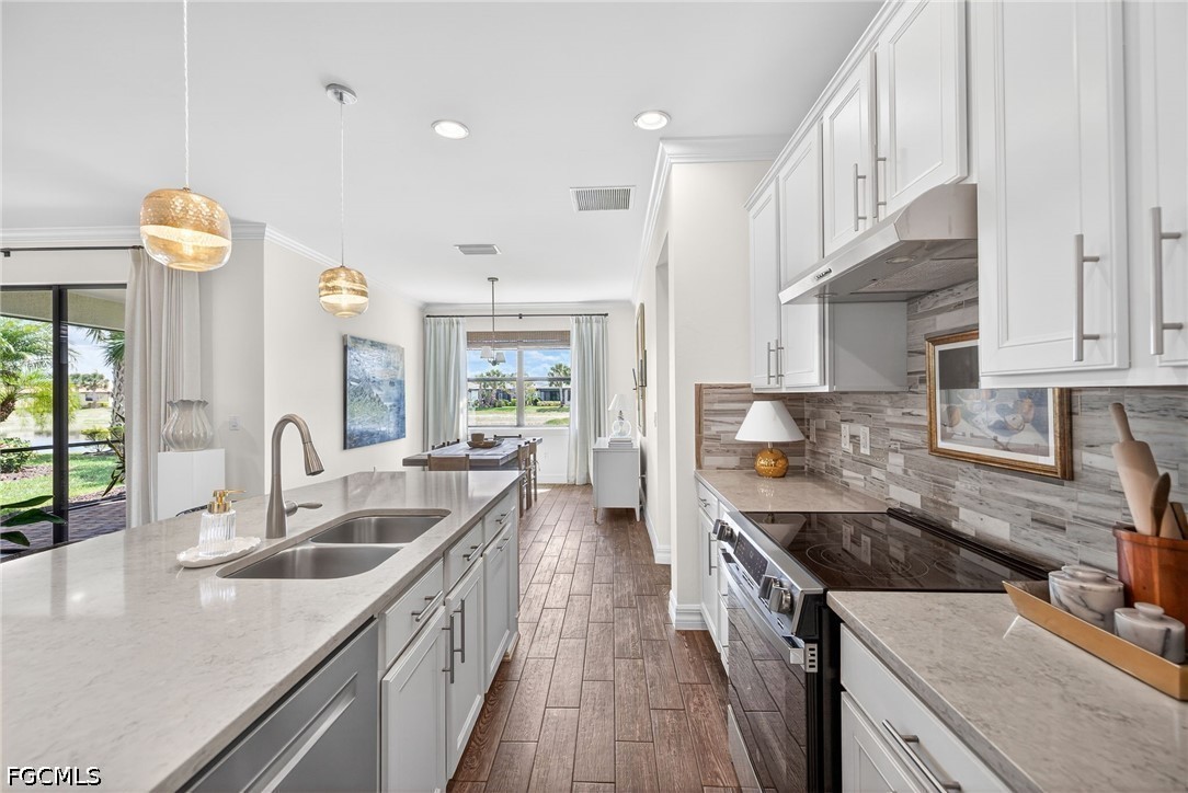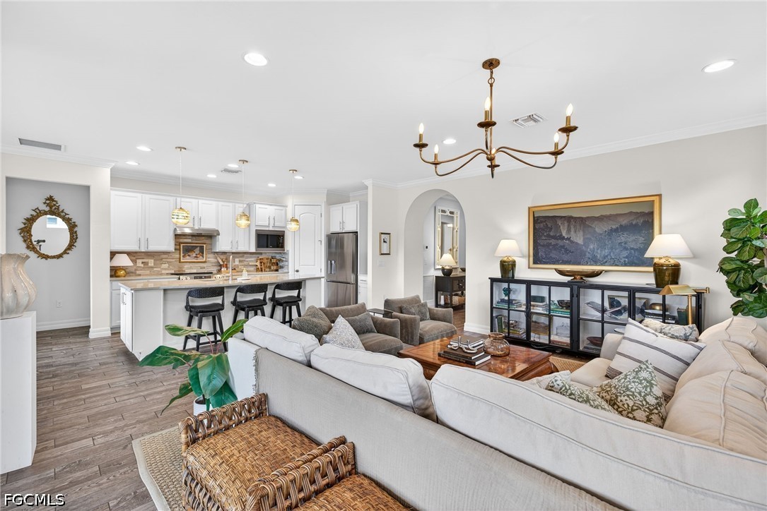 Style, comfort, and thoughtful upgrades come together beautifully in this 3 Bedroom + Den, 2 Bathroom home with serene lake views. Crown molding and upgraded lighting throughout add a touch of sophistication, while the gorgeous Kitchen stands out with quartz countertops, a stylish tile backsplash, recessed lighting, and eye-catching pendant lights. Designed for both beauty and functionality, the Kitchen also includes lower cabinet pull-outs along with a low-profile stove and newer refrigerator and microwave, making organization and everyday cooking effortless. The Laundry Room is exceptionally well-equipped with abundant cabinetry for storage along with a convenient sink—perfect for keeping household tasks organized and efficient. The Den features glass French doors offering a quiet, comfortable space that can easily serve as a study, reading room, or additional gathering area depending on your needs. Embrace the vibrant lifestyle that makes Bridgetown so desirable. Residents enjoy resort-style amenities including a stunning pool and spa, state-of-the-art fitness center, tennis, pickleball and bocce courts, and a full calendar of social activities and clubs that make it easy to stay active and connected with neighbors. All of this is in a prime Fort Myers location just minutes from RSW International Airport, Gulf Coast Town Center, exceptional dining, shopping, and Southwest Florida’s beautiful beaches, making everyday living both convenient and enjoyable.