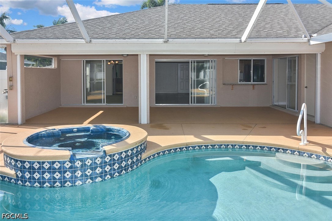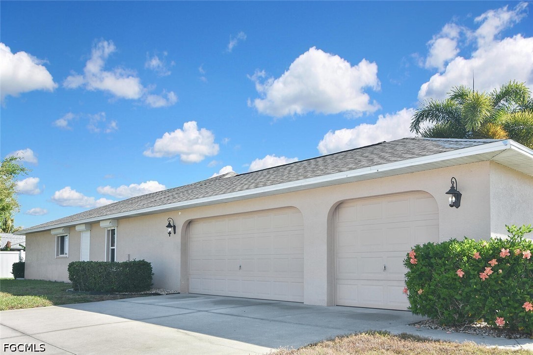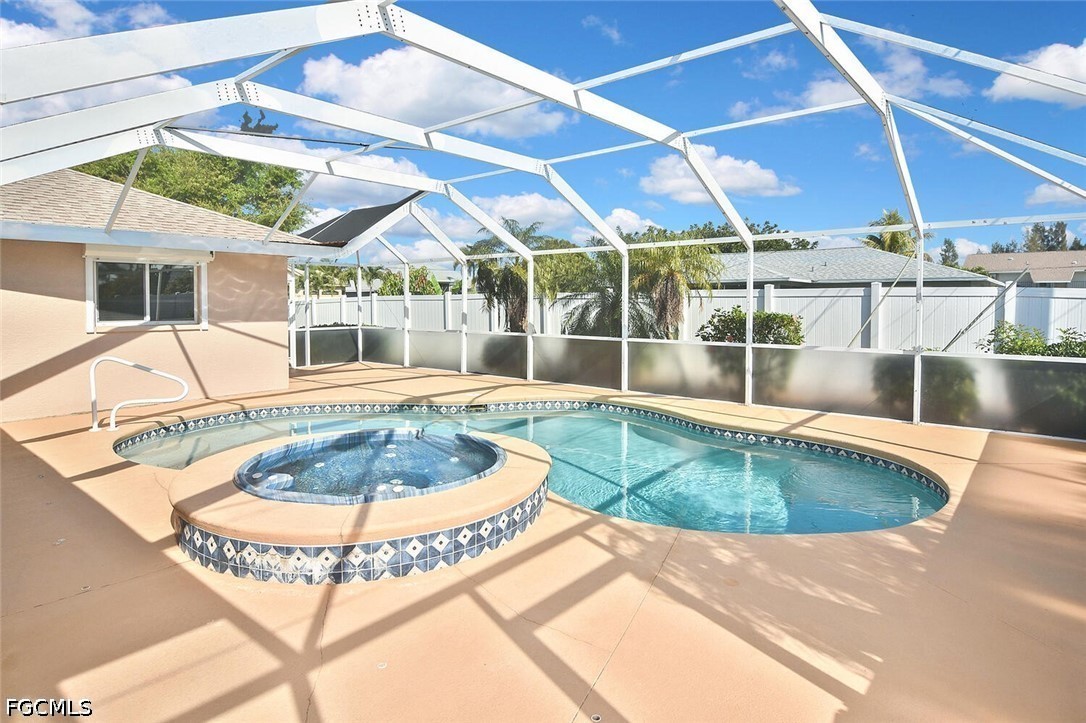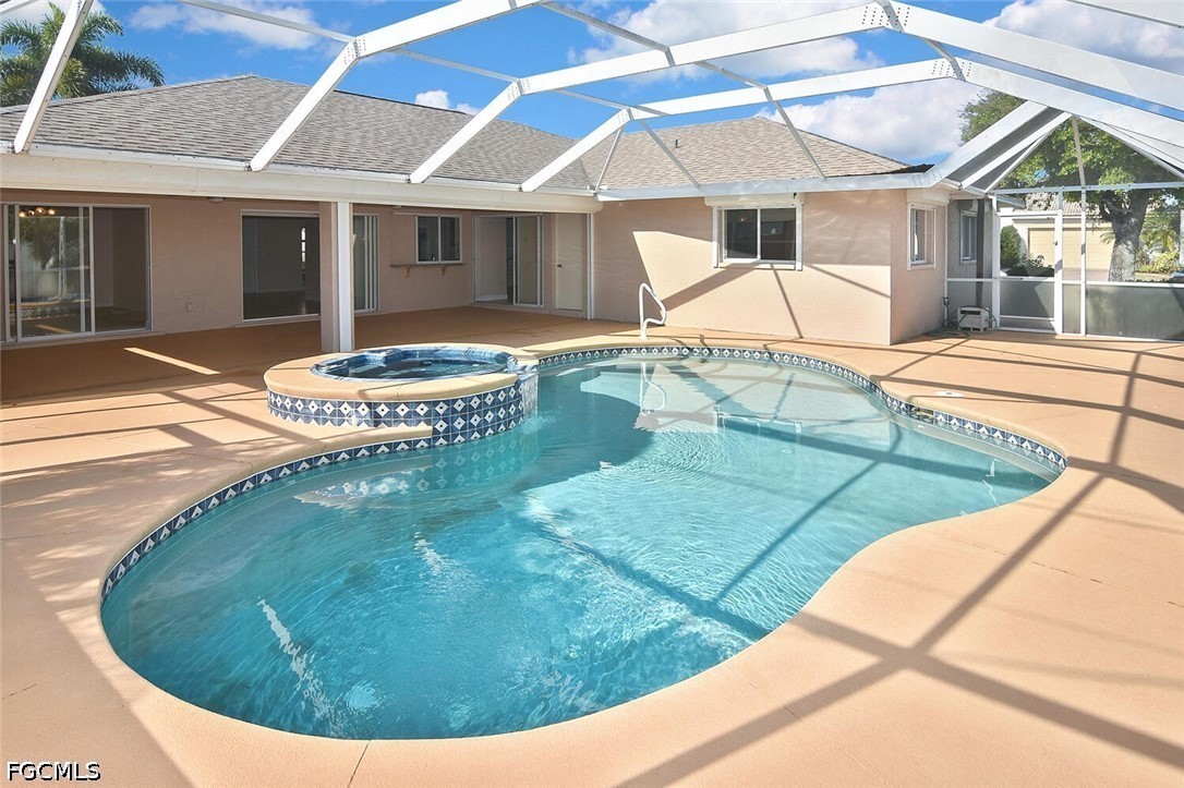 Welcome to this spacious and beautifully appointed 4-bedroom, 2-bath pool home featuring a desirable 3-car side-load garage, perfectly positioned on an oversized corner homesite in Southeast Cape Coral. Conveniently located just off Veterans Parkway, this residence offers effortless access to Fort Myers. Designed with both comfort and style in mind, this home showcases an expansive and thoughtfully designed floor plan ideal for refined living and entertaining. Step outside to your private outdoor retreat, complete with a sparkling pool and spa, and a large under-truss lanai—perfect for relaxing or hosting guests in a serene setting. The fenced yard provides both privacy and a secure space for pets. Inside, you’ll find multiple inviting living spaces, including a formal living room, elegant dining area, and a generous family room. The well-appointed kitchen offers abundant cabinetry, ample prep space, and a charming breakfast nook for casual dining. All four bedrooms feature walk-in closets, delivering exceptional storage and convenience. Recent upgrades include a newer roof, hurricane accordion shutters, and electric roll-down shutters on the lanai, offering enhanced protection and peace of mind. Located in a no flood zone with assessments paid, this home adds both value and confidence to your investment. With its impressive layout, desirable features, and prime location, this residence presents an exceptional opportunity for a growing family or savvy investor.