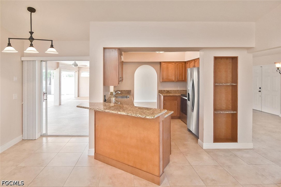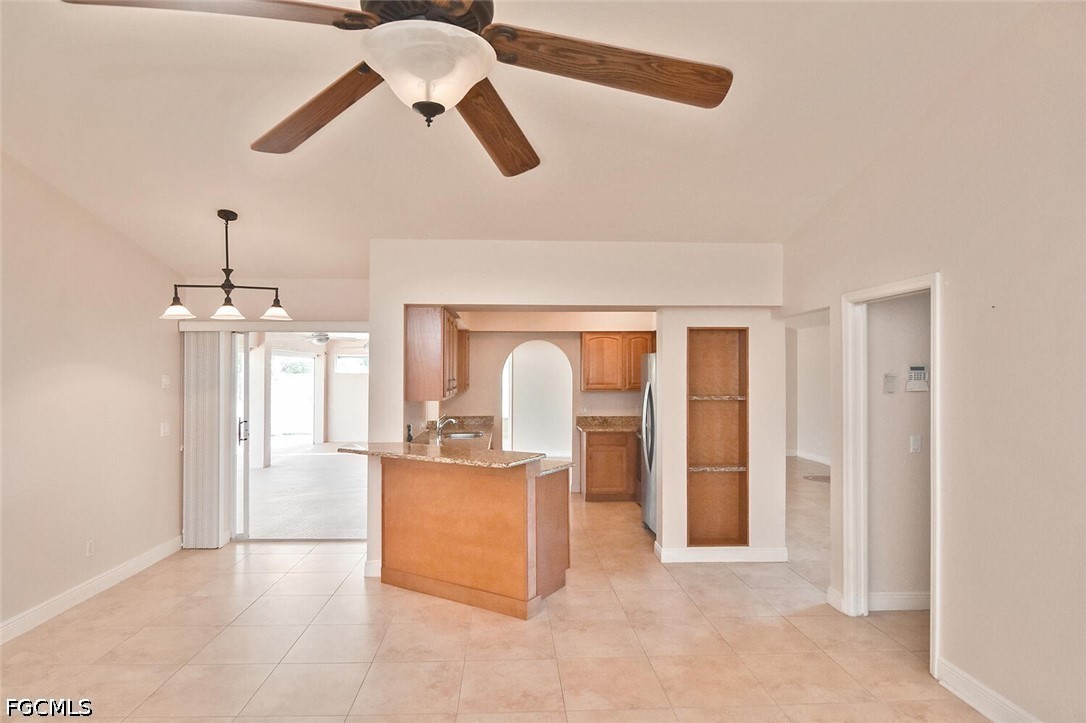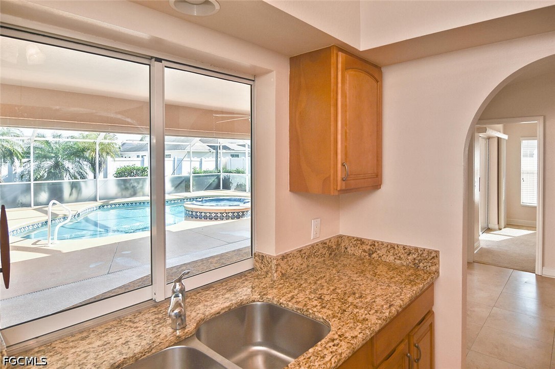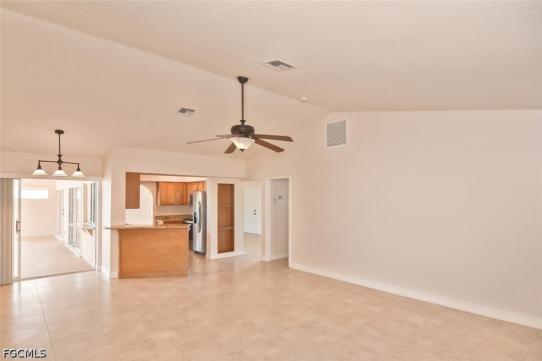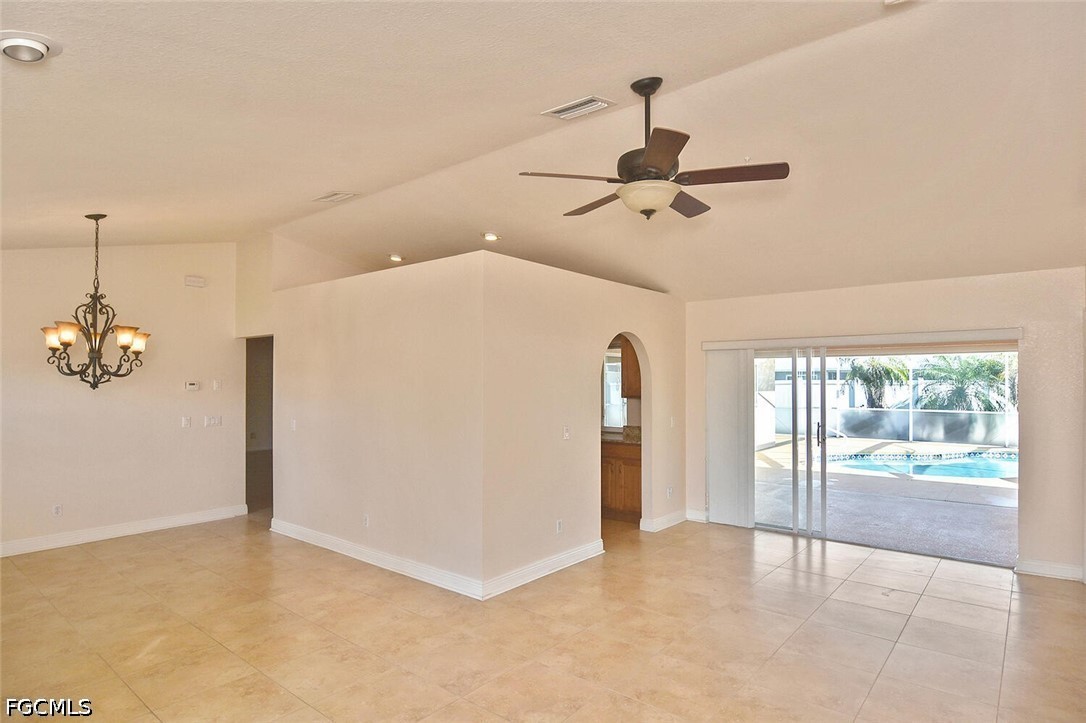 Welcome to this spacious and beautifully appointed 4-bedroom, 2-bath pool home featuring a desirable 3-car side-load garage, perfectly positioned on an oversized corner homesite in Southeast Cape Coral. Conveniently located just off Veterans Parkway, this residence offers effortless access to Fort Myers. Designed with both comfort and style in mind, this home showcases an expansive and thoughtfully designed floor plan ideal for refined living and entertaining. Step outside to your private outdoor retreat, complete with a sparkling pool and spa, and a large under-truss lanai—perfect for relaxing or hosting guests in a serene setting. The fenced yard provides both privacy and a secure space for pets. Inside, you’ll find multiple inviting living spaces, including a formal living room, elegant dining area, and a generous family room. The well-appointed kitchen offers abundant cabinetry, ample prep space, and a charming breakfast nook for casual dining. All four bedrooms feature walk-in closets, delivering exceptional storage and convenience. Recent upgrades include a newer roof, hurricane accordion shutters, and electric roll-down shutters on the lanai, offering enhanced protection and peace of mind. Located in a no flood zone with assessments paid, this home adds both value and confidence to your investment. With its impressive layout, desirable features, and prime location, this residence presents an exceptional opportunity for a growing family or savvy investor.