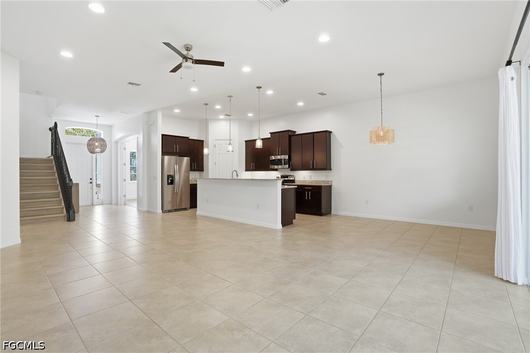Welcome to this beautifully updated two-story home in Banyan Bay, offering a spacious and versatile layout with 3+ den bedrooms, 2.5 baths, and a large flex room 2,611 square feet of comfortable living space! This home has remained high and dry through recent hurricanes with no flooding and has hurricane shutters, providing added peace of mind while enjoying a prime location close to the Gulf beaches. Inside, you’ll find fresh interior, new hardwood flooring and tile, and updated lighting and ceiling fans that create a clean, modern feel throughout. The den features french doors, making it an ideal home office or flexible living space. The kitchen is both stylish and functional with wood cabinetry, granite countertops, and stainless steel appliances...It flows seamlessly into the main living areas, perfect for both everyday living and entertaining. The primary suite is conveniently located on the first floor and features an ensuite bath with a soaking tub, dual vanities, and a glass-enclosed shower. The Den is also located downstairs, making a great office, formal dining or playroom. Upstairs, the additional bedrooms are generously sized and share a full bathroom and have their own private flex space, providing comfort for family and guests. Additional highlights include a laundry room with storage cabinets and a utility sink, as well as a 2023 A/C system. Located just outside the gated section of Banyan Bay, this property offers lower HOA fees while still enjoying access to the community pool. Live an active Southwest Florida lifestyle in this area, perfect for biking and running in a vibrant, lush, and beautifully maintained setting in the heart of South Fort Myers. Optional memberships are available at nearby Crown Colony and Lexington Country Club, adding even more lifestyle opportunities. Just minutes from beaches, shopping, and dining, this move-in ready home is perfectly positioned to enjoy the best of SWFL living!