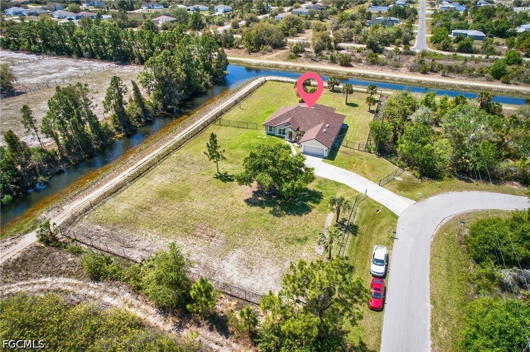 fully fenced 1.03-acre lot, the 2,560 sq. ft. residence welcomes you with high ceilings, all tile floors and